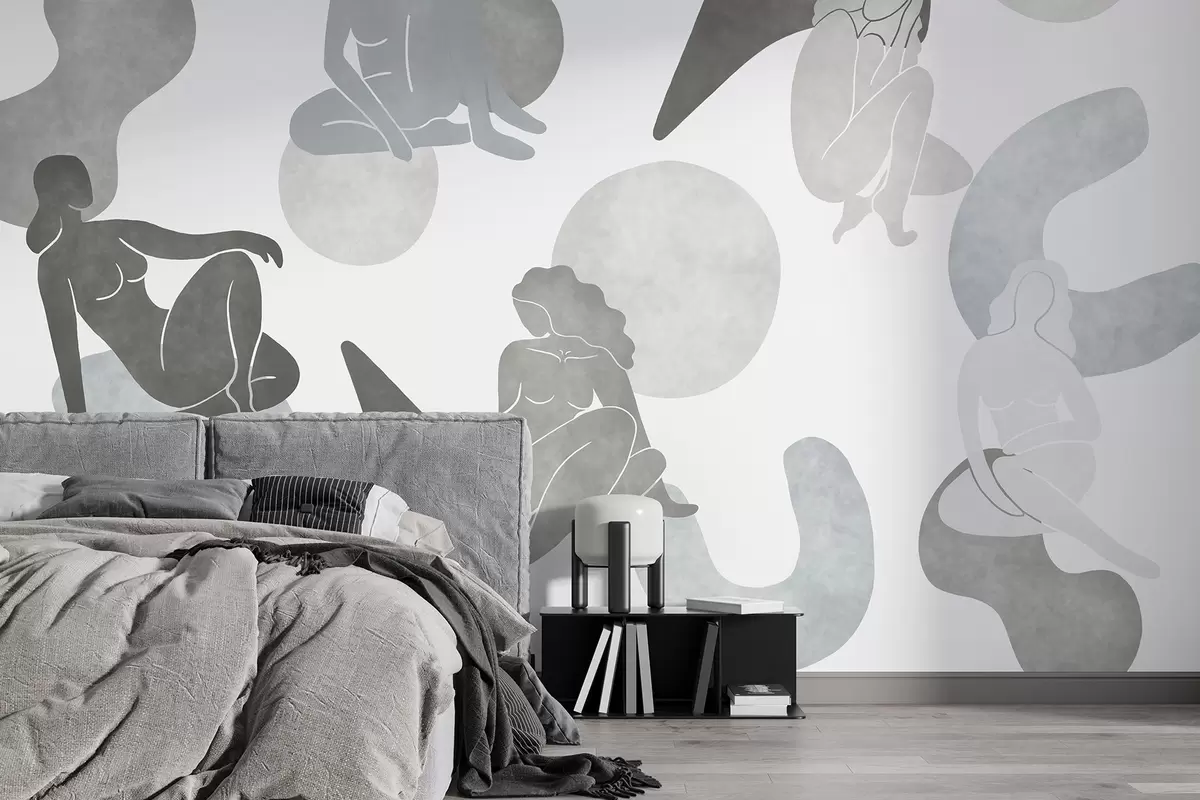 Valokuvatapetti Geometriset abstraktiot naisten silueteilla, boho-tyyli, harmaat värit Nr w03753v5