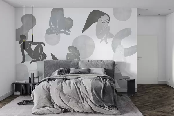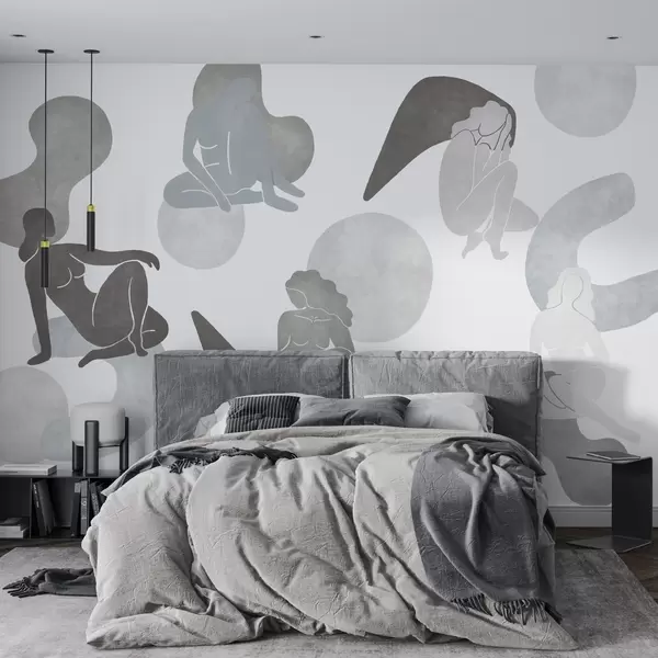 Valokuvatapetti Geometriset abstraktiot naisten silueteilla, boho-tyyli, harmaat värit Nr w03753v5