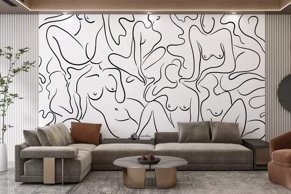 Valokuvatapetti Viivapiirros siluetteja naisten vartalot, abstraktio, musta väri Nr w03755