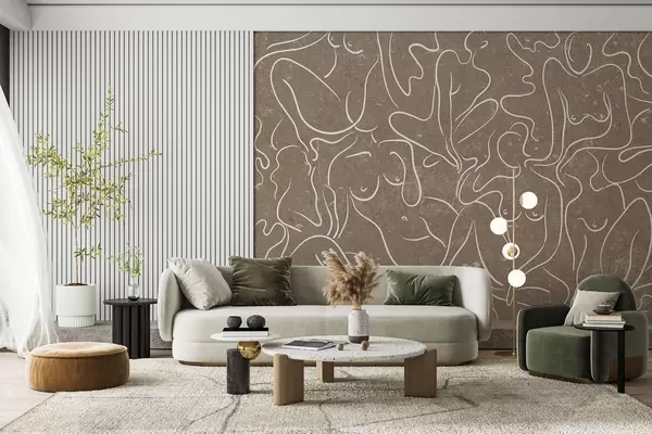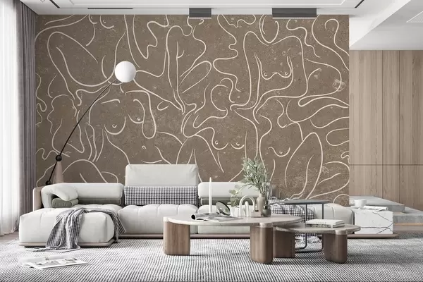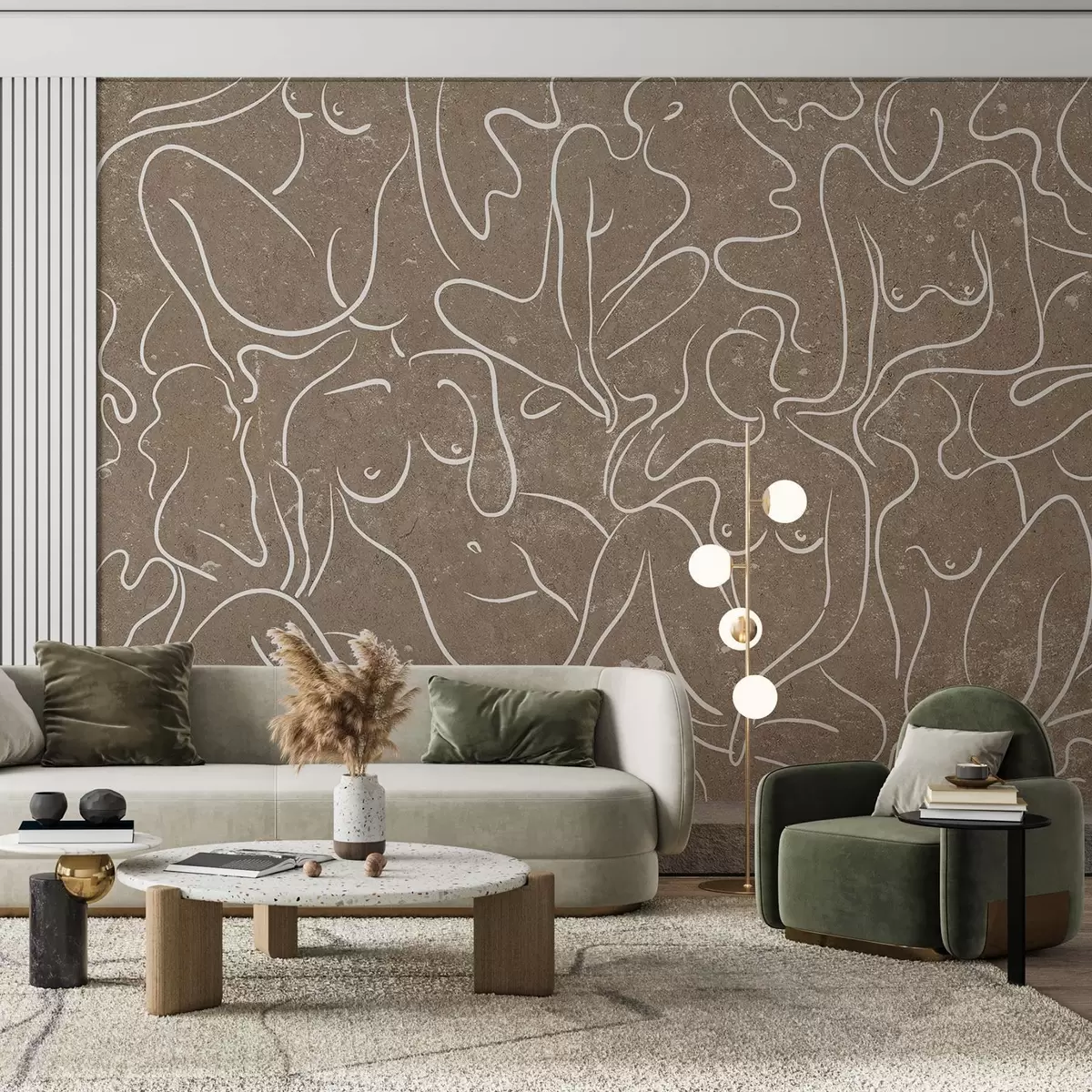 Valokuvatapetti Viivapiirros anatomiset siluetit, abstraktio, beige tausta Nr w03756