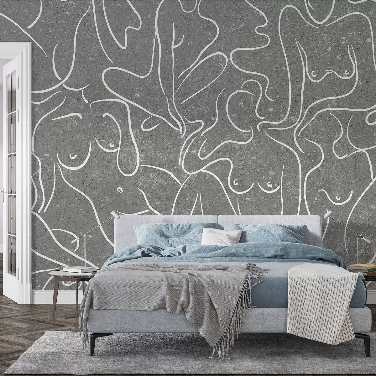 Valokuvatapetti Viivapiirros anatomiset siluetit, abstraktio, harmaa tausta Nr w03756v1