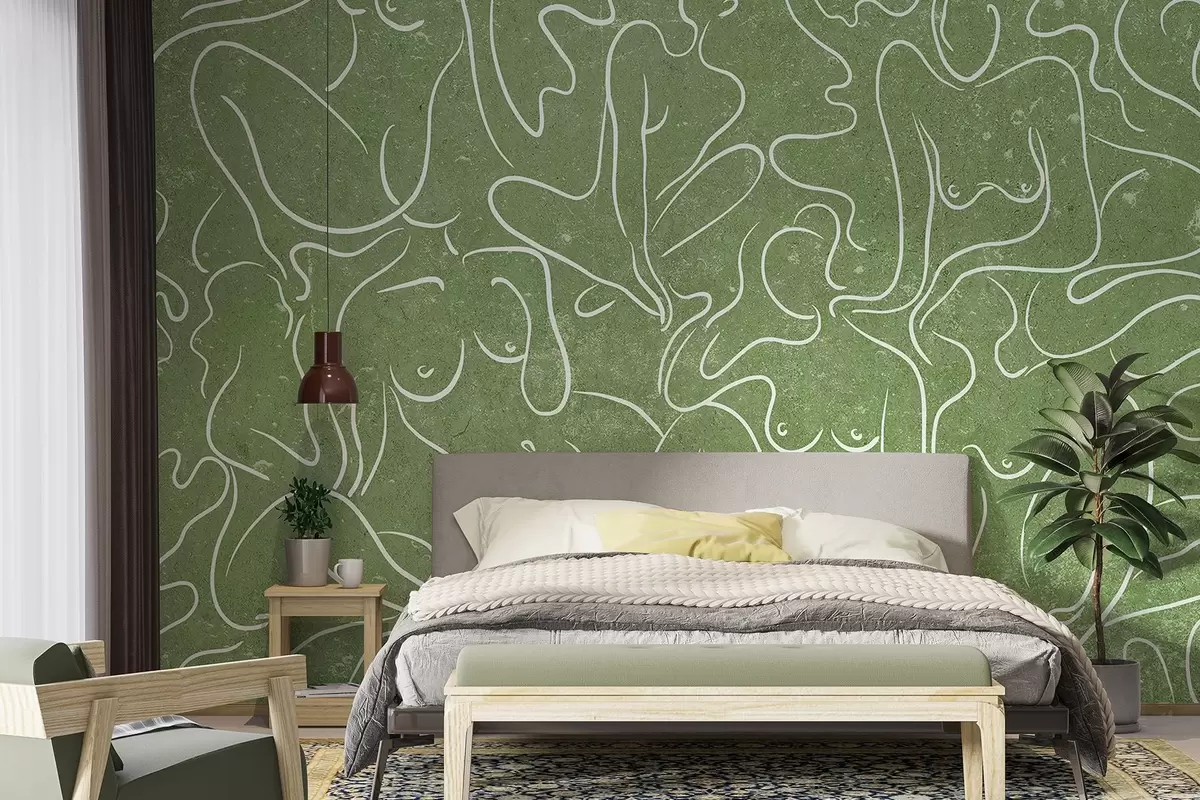 Valokuvatapetti Viivapiirros anatomiset siluetit, abstraktio, vihreä tausta Nr w03756v2
