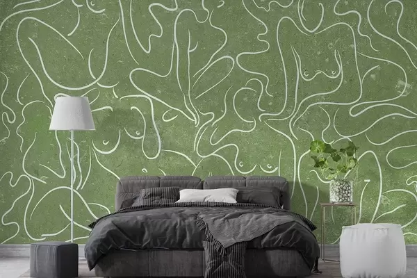 Valokuvatapetti Viivapiirros anatomiset siluetit, abstraktio, vihreä tausta Nr w03756v2