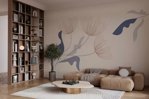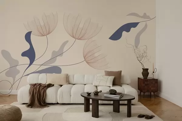 Valokuvatapetti elegantti minimalistinen kukkia sinisen sävyjä beige tausta Nr w03763