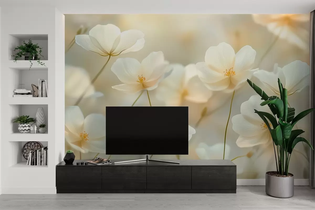 Valokuvatapetti aamun valkoiset kukat Nr w03766