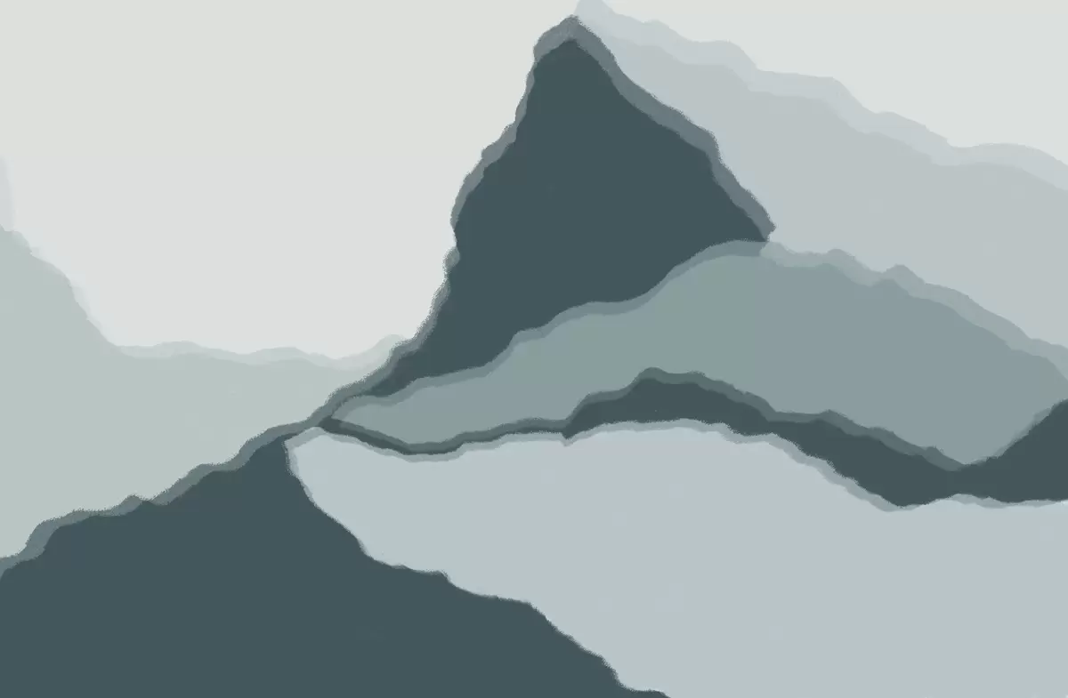 Valokuvatapetti Vuoret, abstraktit ääriviivat, kerroksellisuus, harjujen siluetit, sileät linjat Nr w03791