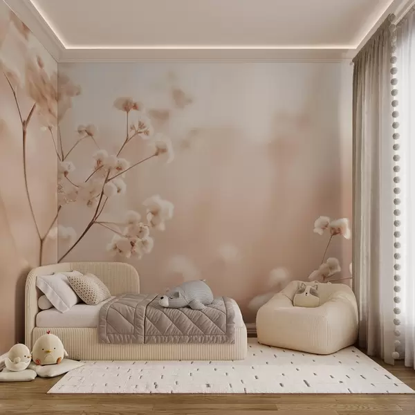 Valokuvatapetti Herkät kermanväriset kuivatut kukat, jotka eivät ole tarkentuneet lämpimällä taustalla Nr w03793