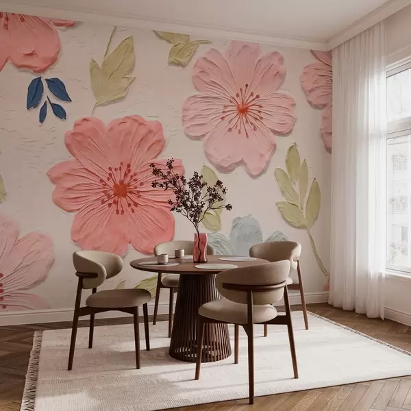 Valokuvatapetti Reliefi kukkia bas-relief tyyliin vaaleanpunaisia sävyjä Nr w03797