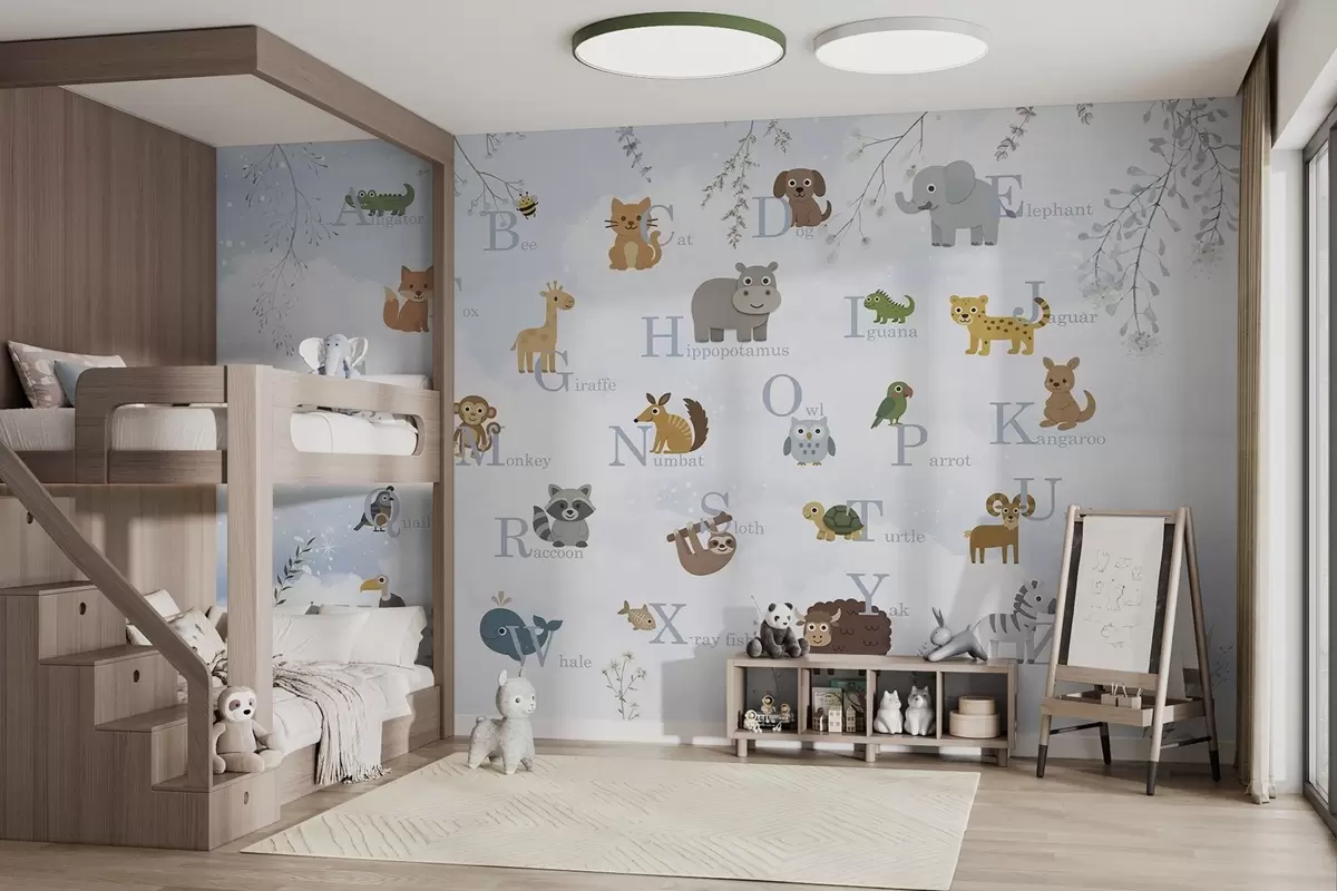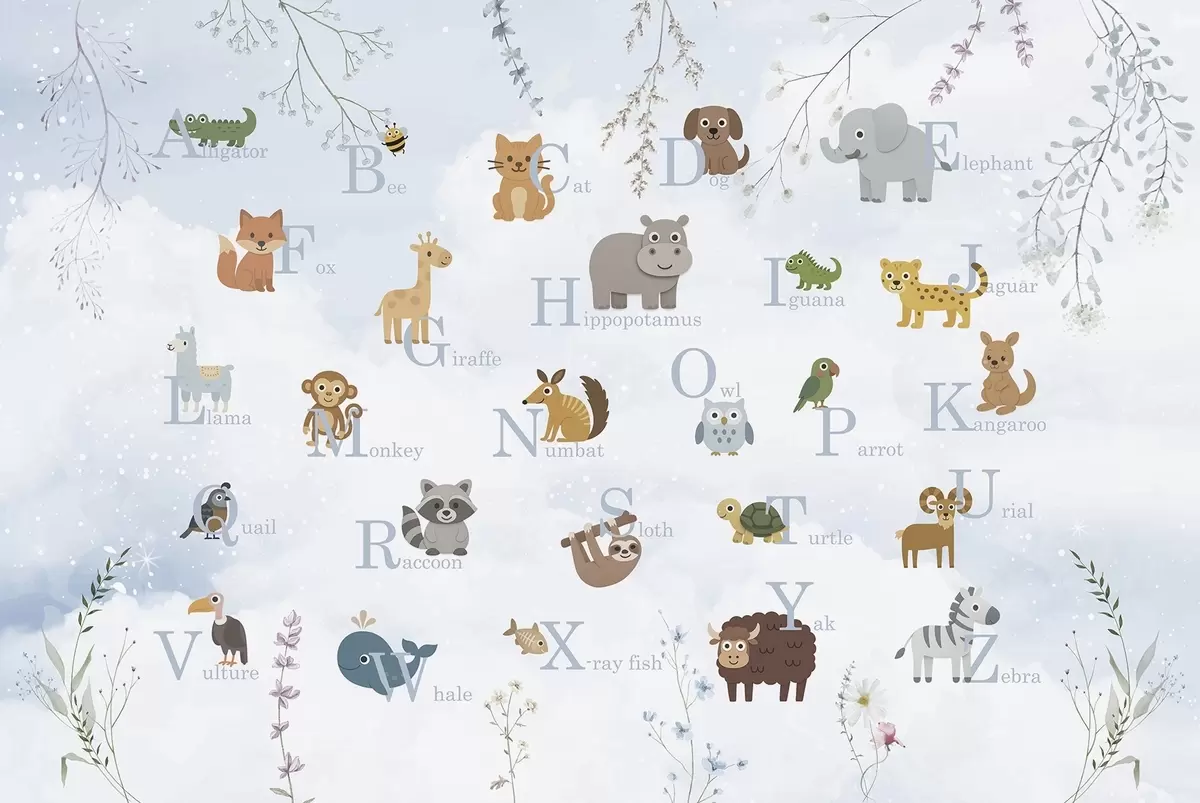 Valokuvatapetti Aakkoset sinisillä kirjaimilla, kasveilla ja taivaalla Nr w03809v1