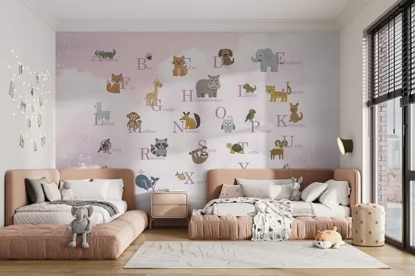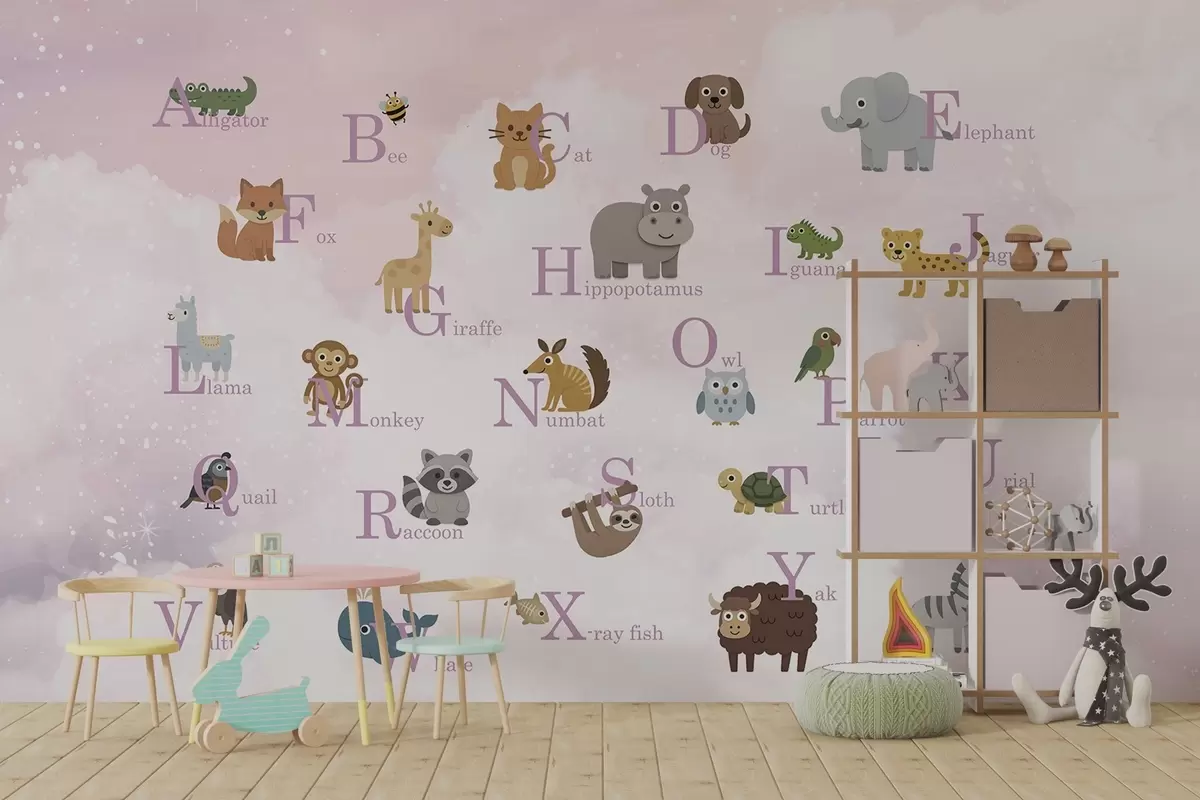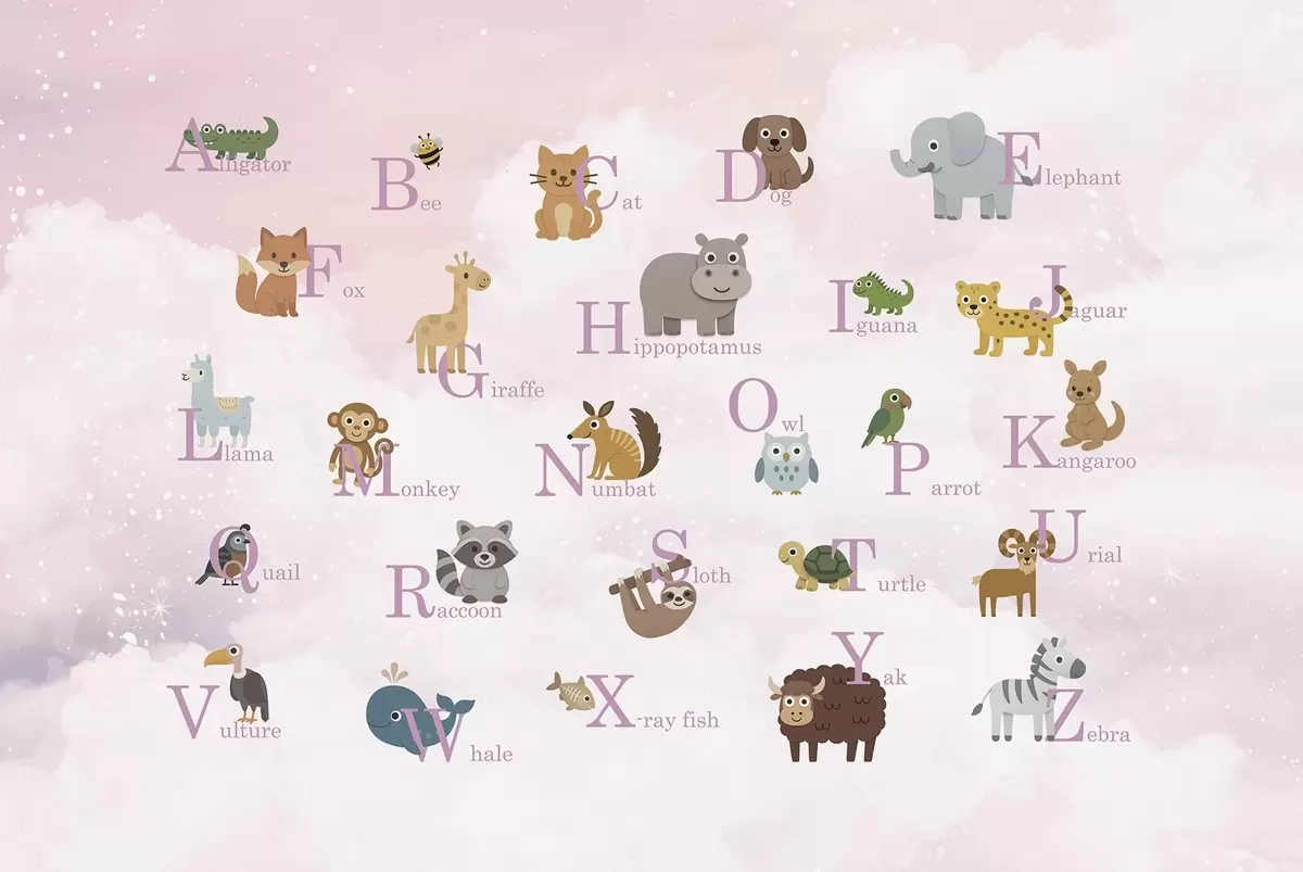 Valokuvatapetti Aakkoset vaaleanpunaisilla kirjaimilla taivaalla taustalla Nr w03810
