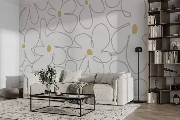 Valokuvatapetti Minimalistinen kukkia viivataide vaaleilla väreillä Nr w03812