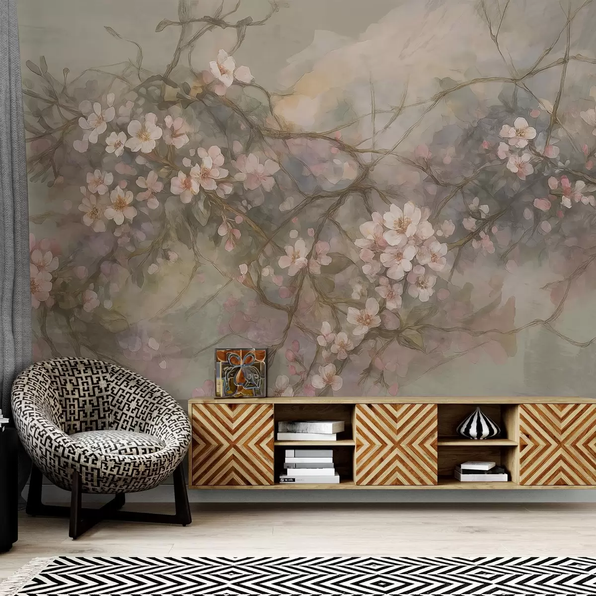 Valokuvatapetti Akvarelli abstrakti oksat kukkia Nr w03815