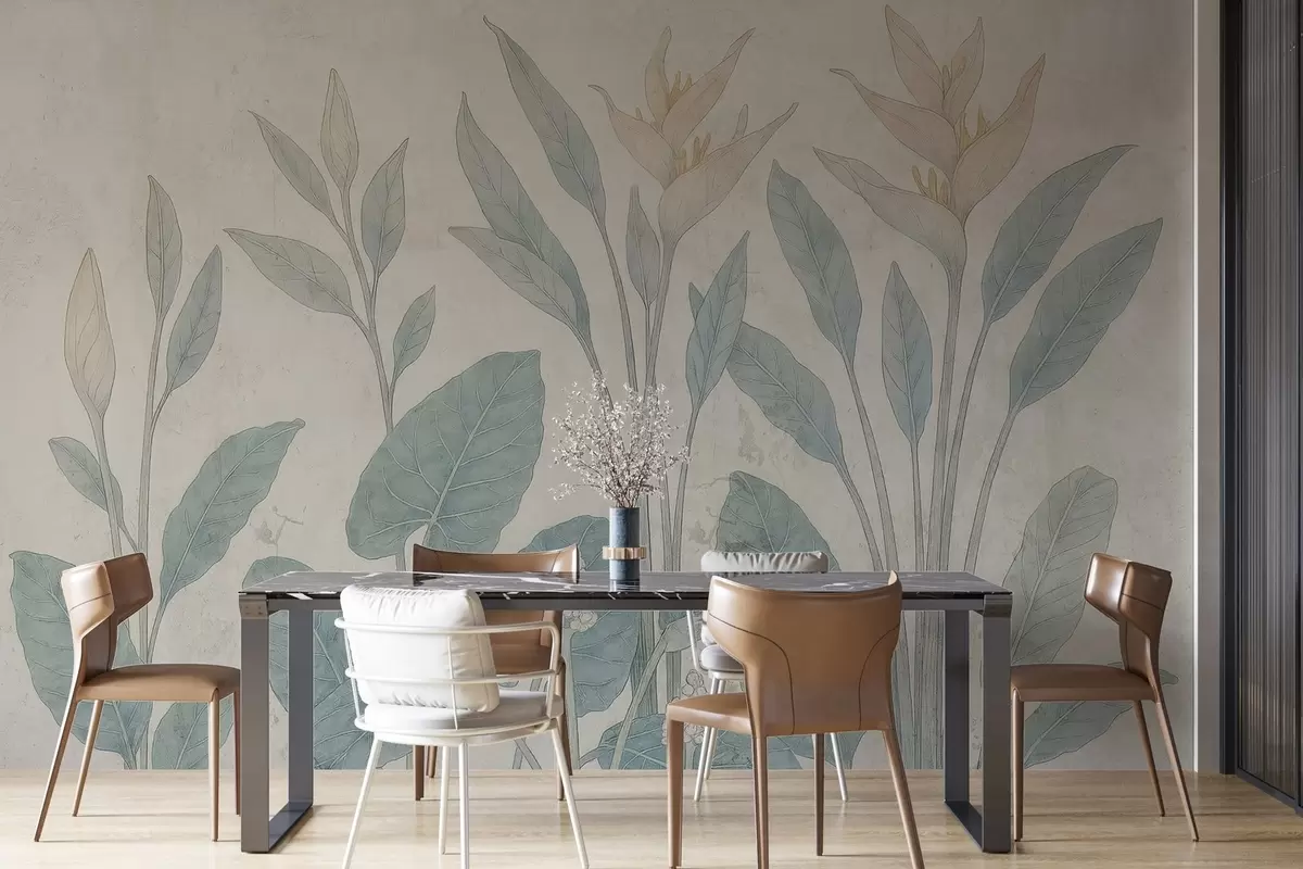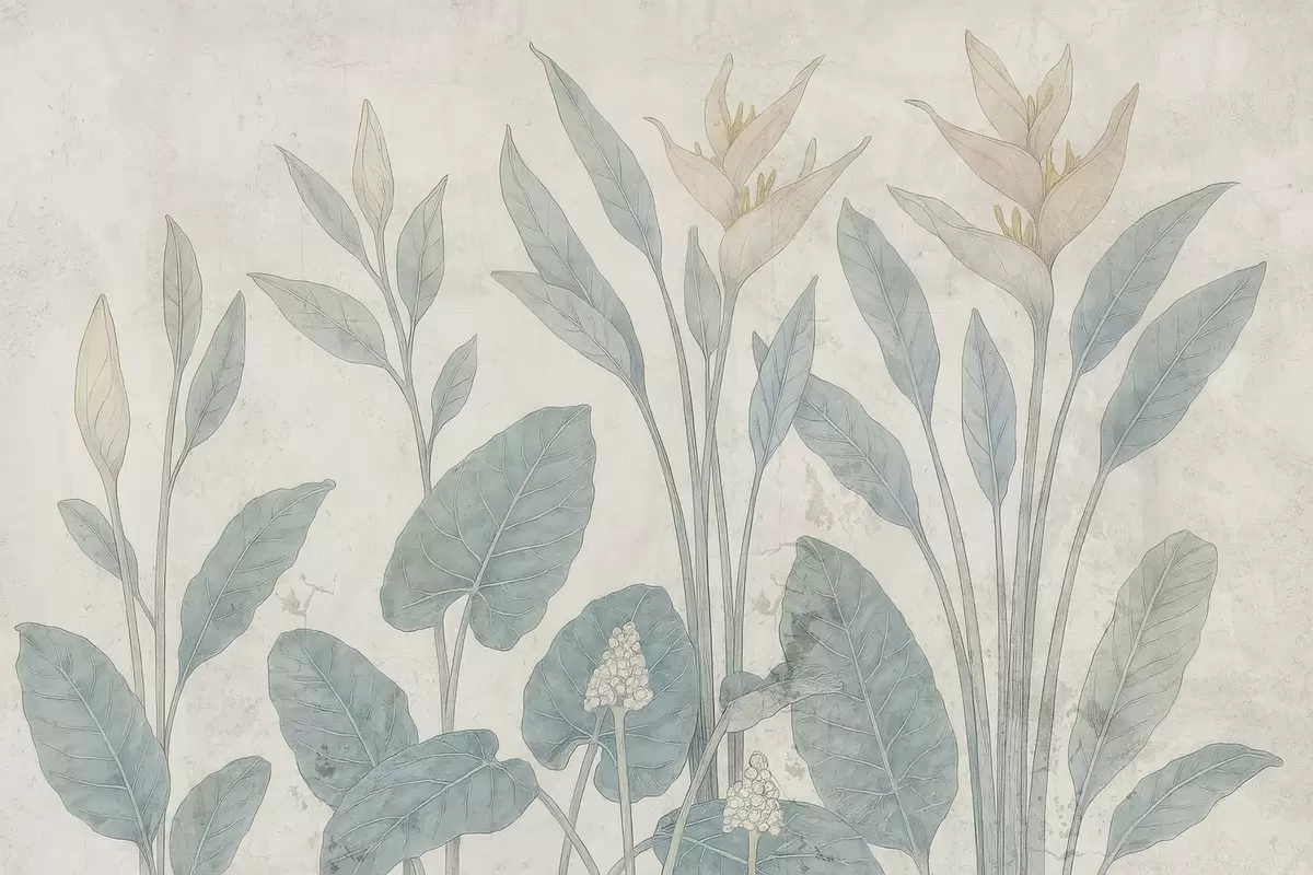 Valokuvatapetti Grunge lehdet vanhalla seinällä Nr w03823