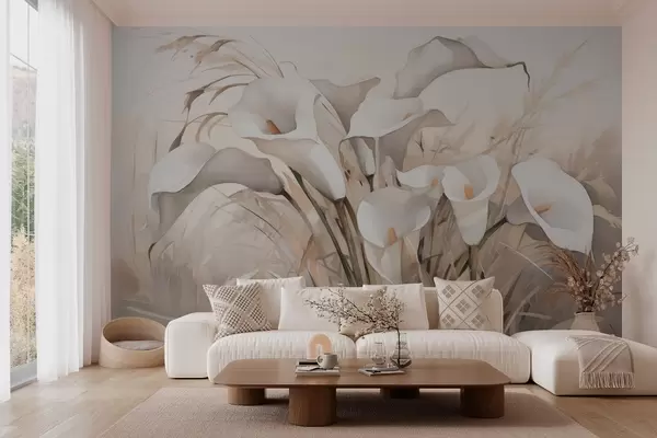 Valokuvatapetti Calla liljat kuivassa ruohossa jäljitelmä vesivärin kanssa Nr w03843v1