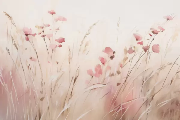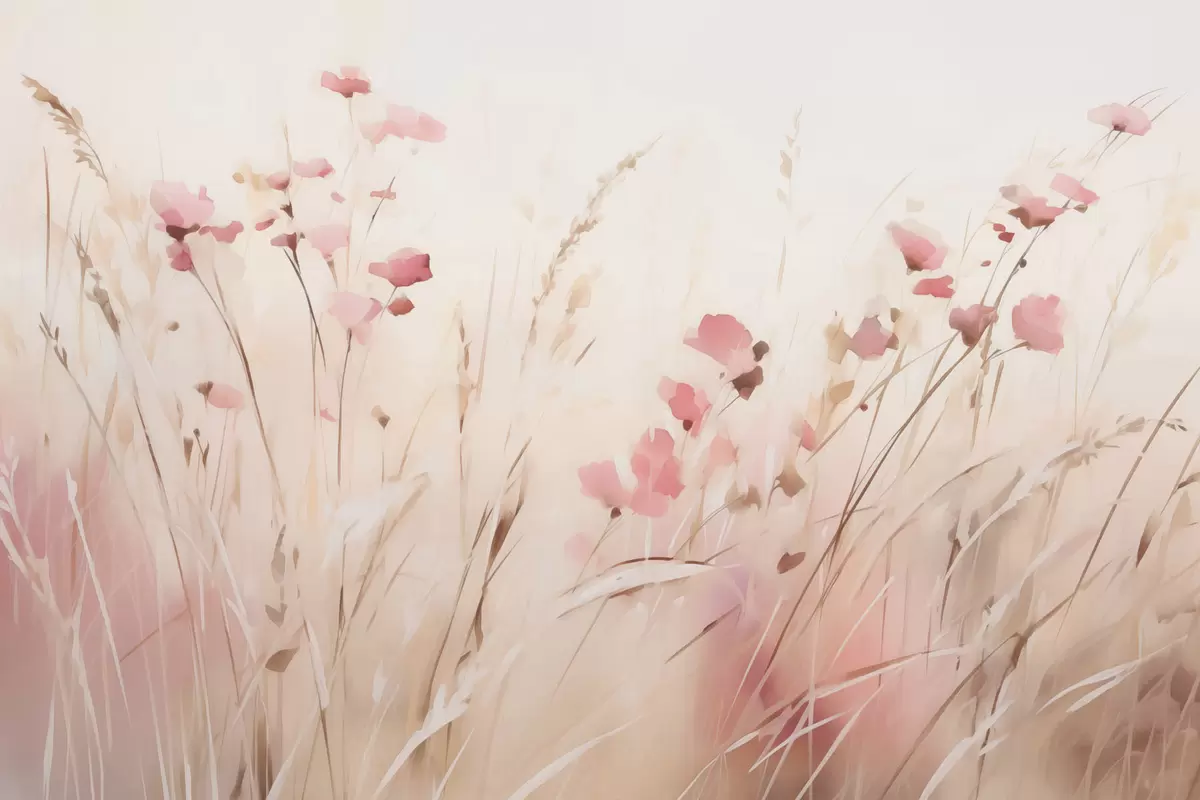 Valokuvatapetti Villi kukkia kuivassa ruohossa jäljitelmä vesivärin Nr w03849