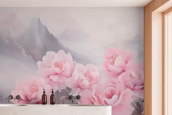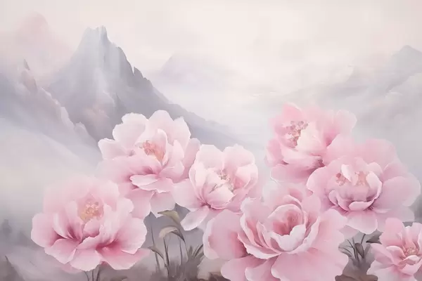 Valokuvatapetti Ruusuja vuorten taustaa vasten Nr w03852