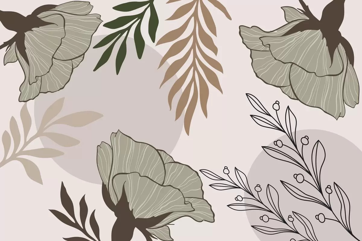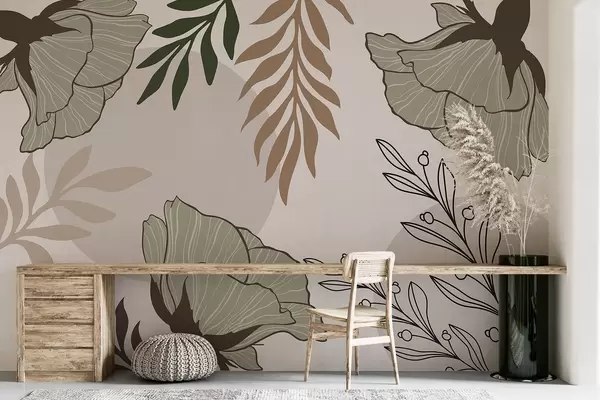 Valokuvatapetti Kukkia ja lehtiä abstraktissa sommitelmassa Nr w03856