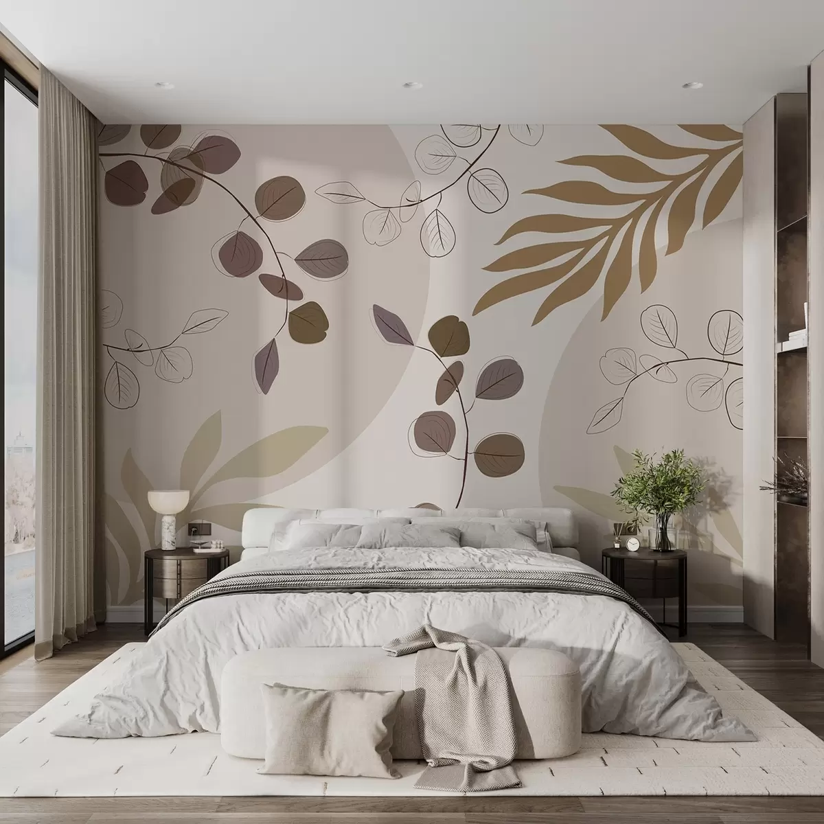 Valokuvatapetti Abstrakti sommitelma lehdet beige sävyjä w03857