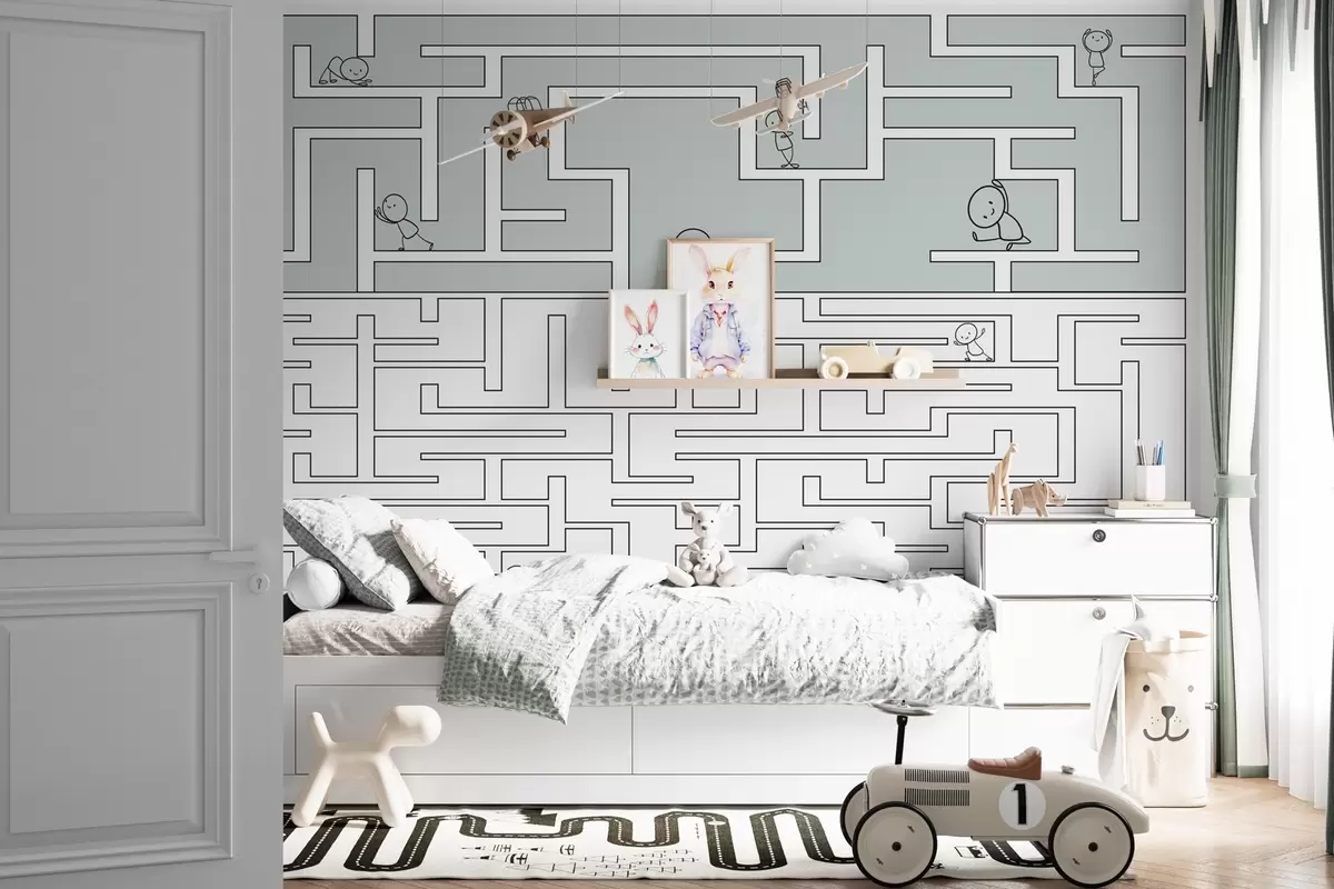 Valokuvatapetti Labyrintti vaaleanvihreä ja valkoinen Nr w03873v4
