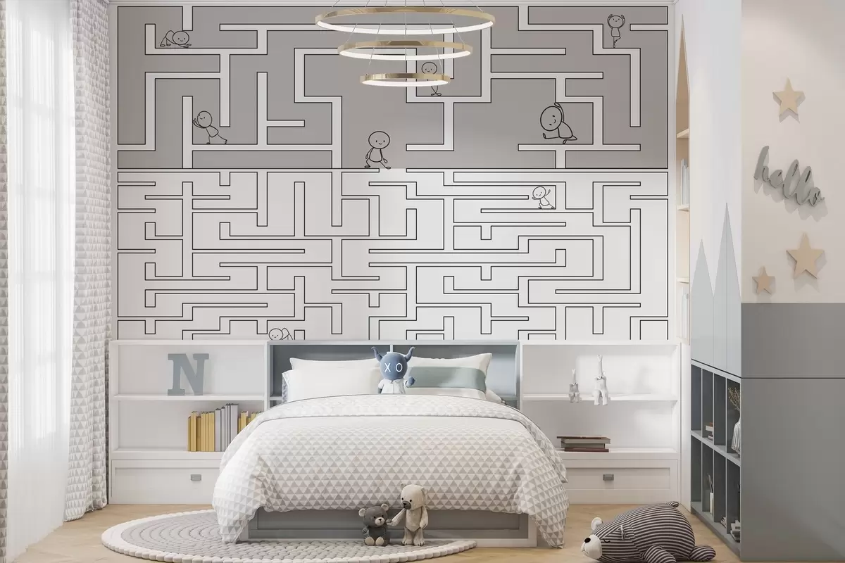 Valokuvatapetti Labyrintti vaaleanharmaa ja valkoinen Nr w03873v5