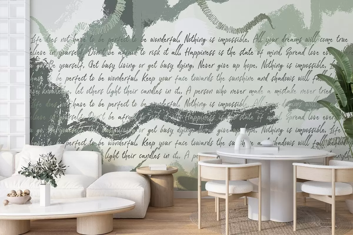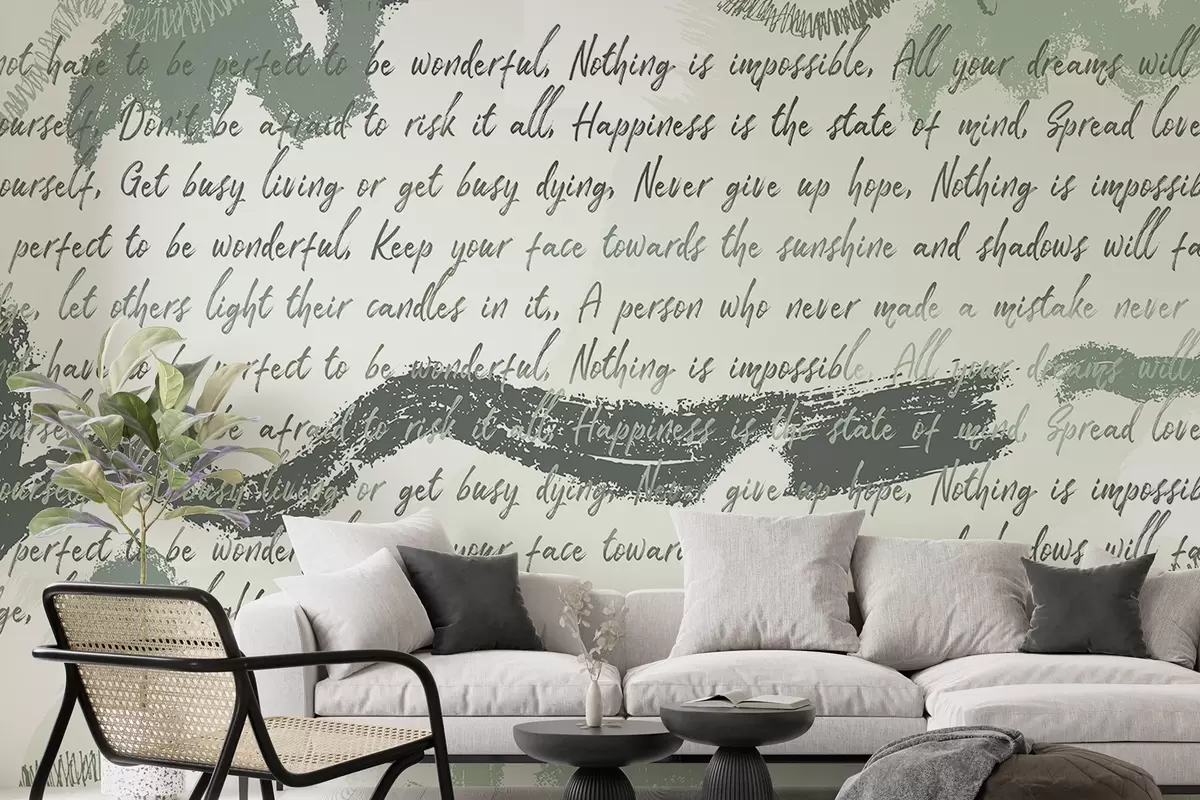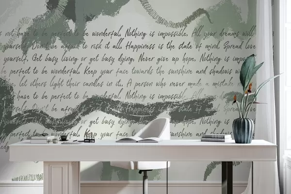 Valokuvatapetti Suunnittelu inspiroivilla lainauksilla, abstraktio, vihreät värit Nr w03909v1