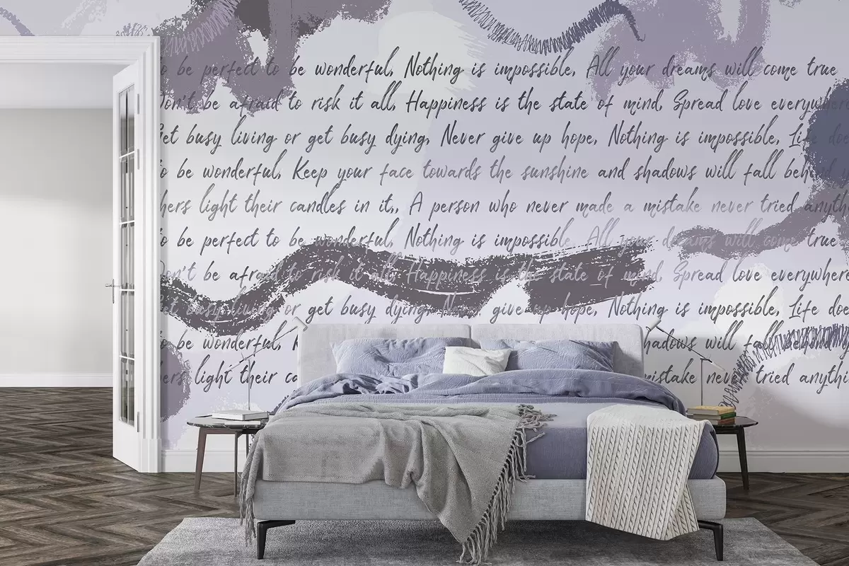 Valokuvatapetti Suunnittelu inspiroivia lainauksia, abstraktio, violetit värit Nr w03909v2