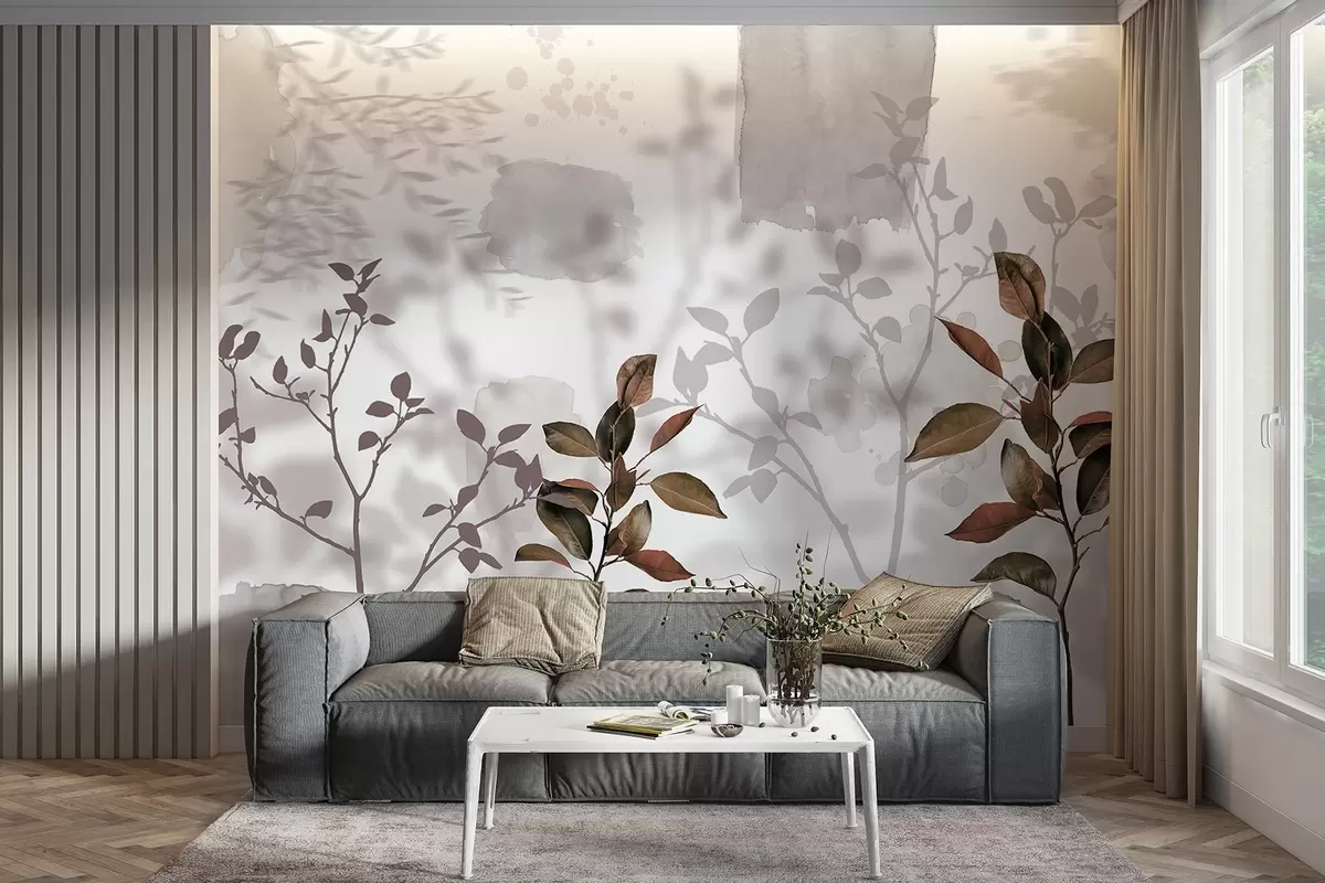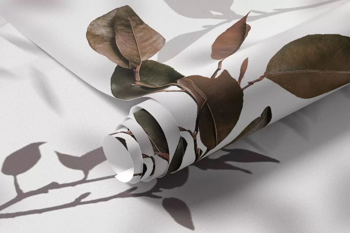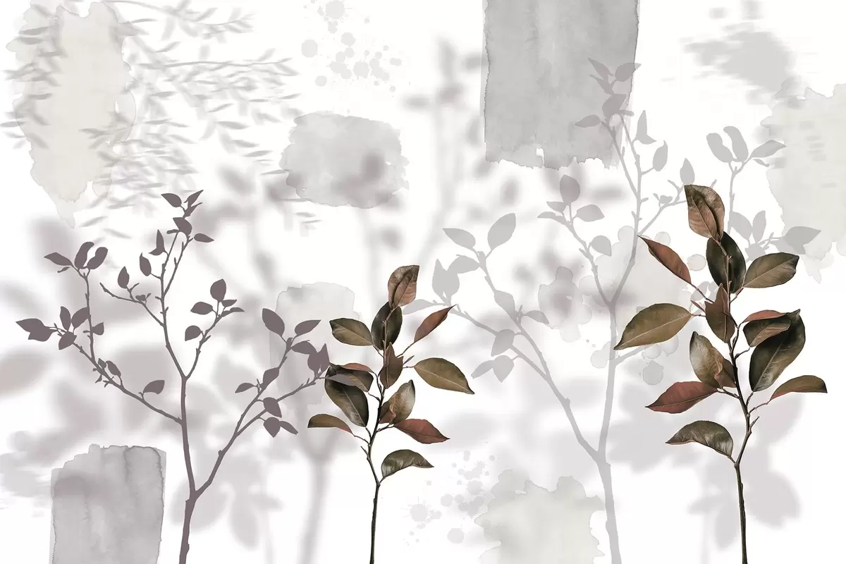 Valokuvatapetti Sitruunapuun lehdet, puun oksat varjot, luonto, vesivärit, akvarelli Nr w03910