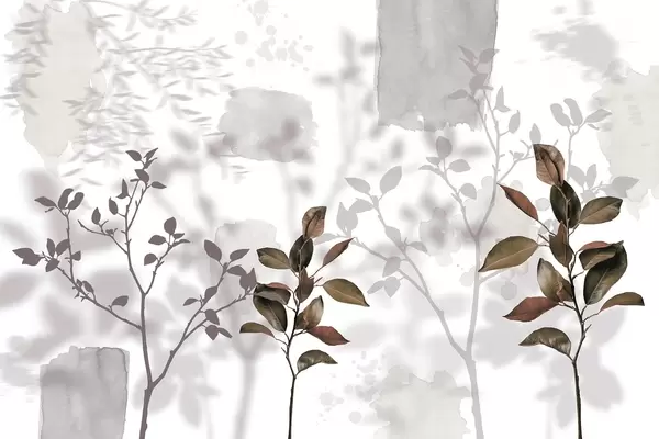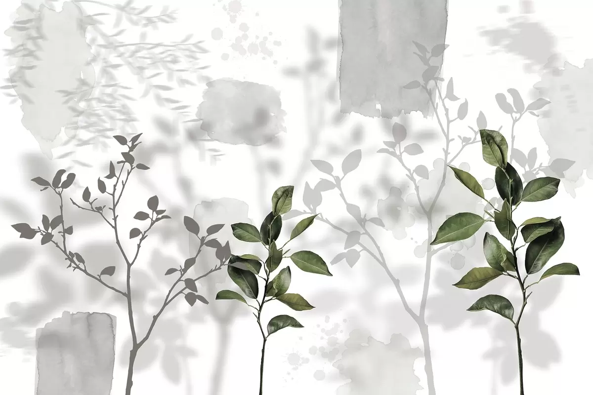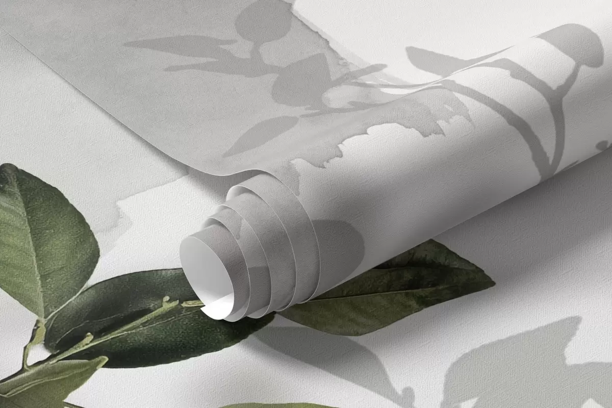 Valokuvatapetti Sitruunapuun lehdet, puun oksien varjot, luonto, akvarelli, vihreä Nr w03910v1
