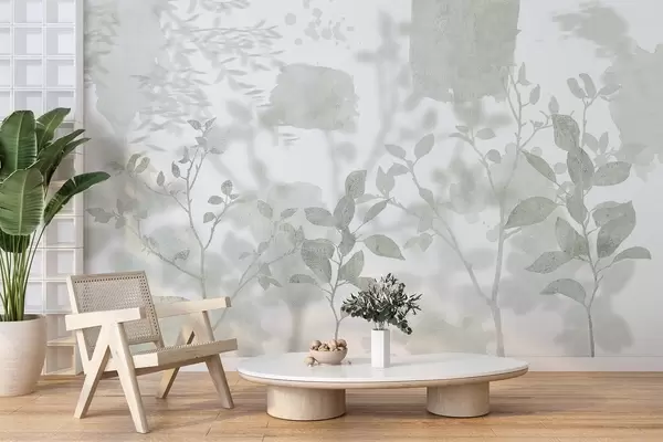 Valokuvatapetti Puut siluetteja, oksat, luonto, akvarelli, vihreät värit Nr w03911v1