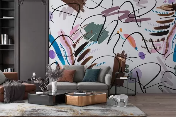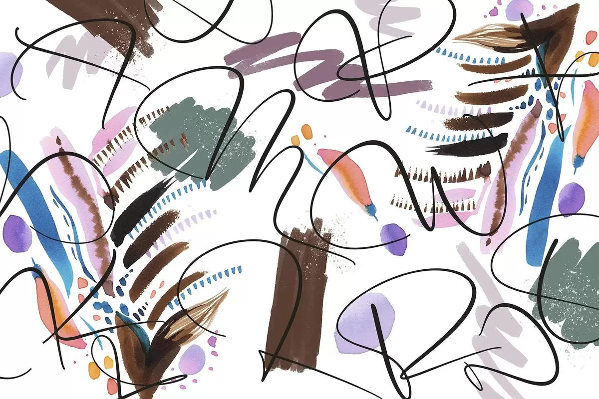 Valokuvatapetti Mustekirjaimet, kalligrafia, siveltimenvedot, eloisat värit, abstraktio Nr w03912