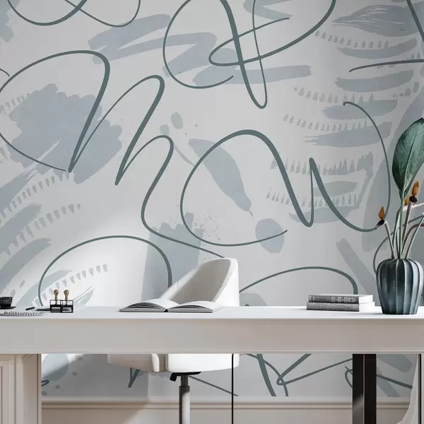 Valokuvatapetti Kalligrafinen abstraktio kirjaimilla, siveltimenvedoilla, sininen väri Nr w03913v1