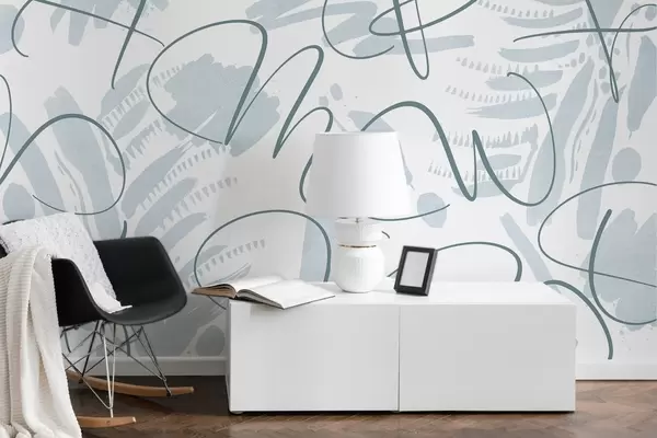 Valokuvatapetti Kalligrafinen abstraktio kirjaimilla, siveltimenvedoilla, sininen väri Nr w03913v1