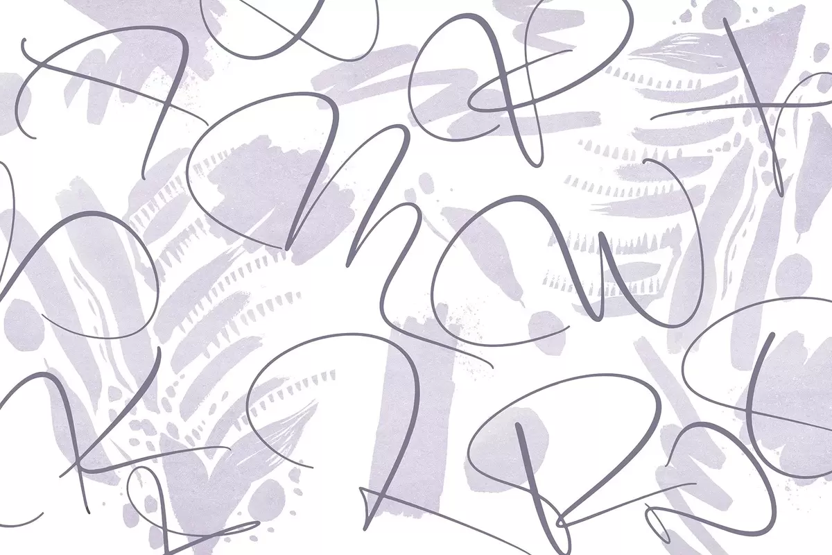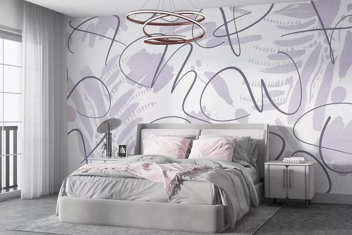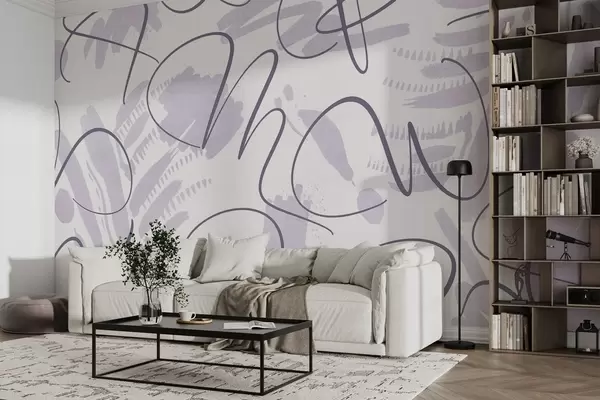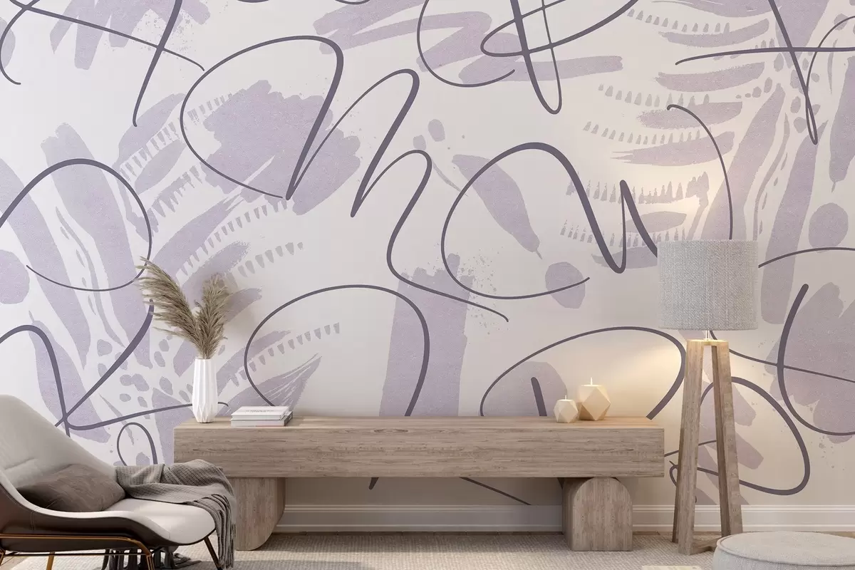 Valokuvatapetti Kalligrafinen abstraktio kirjaimilla, siveltimenvedot, violetti väri Nr w03913v2