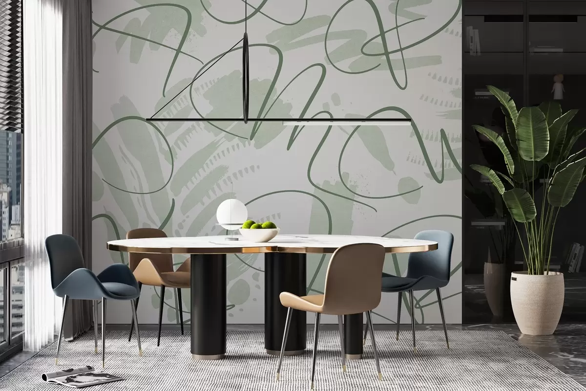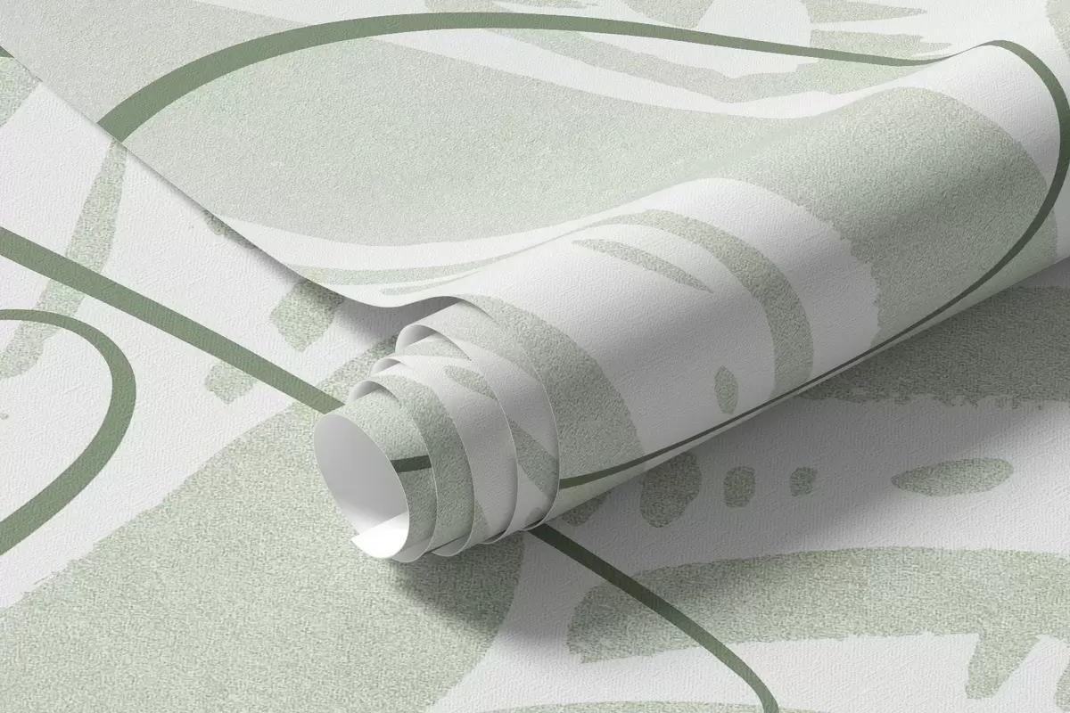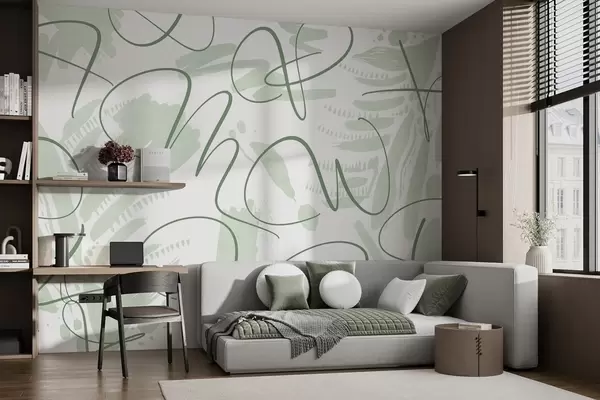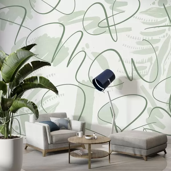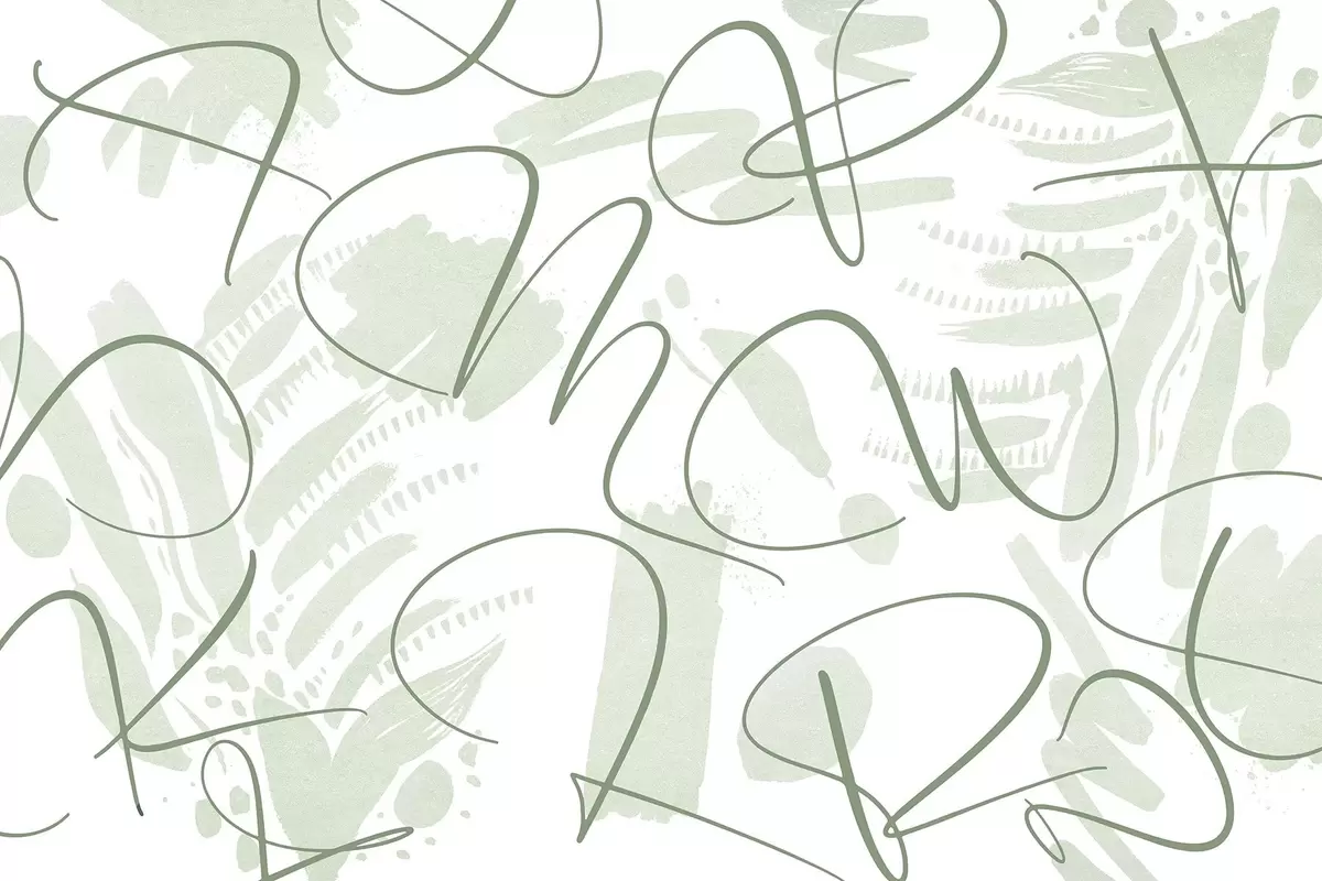 Valokuvatapetti Kalligrafinen abstraktio kirjaimilla, siveltimenvedot, vihreä väri Nr w03913v3