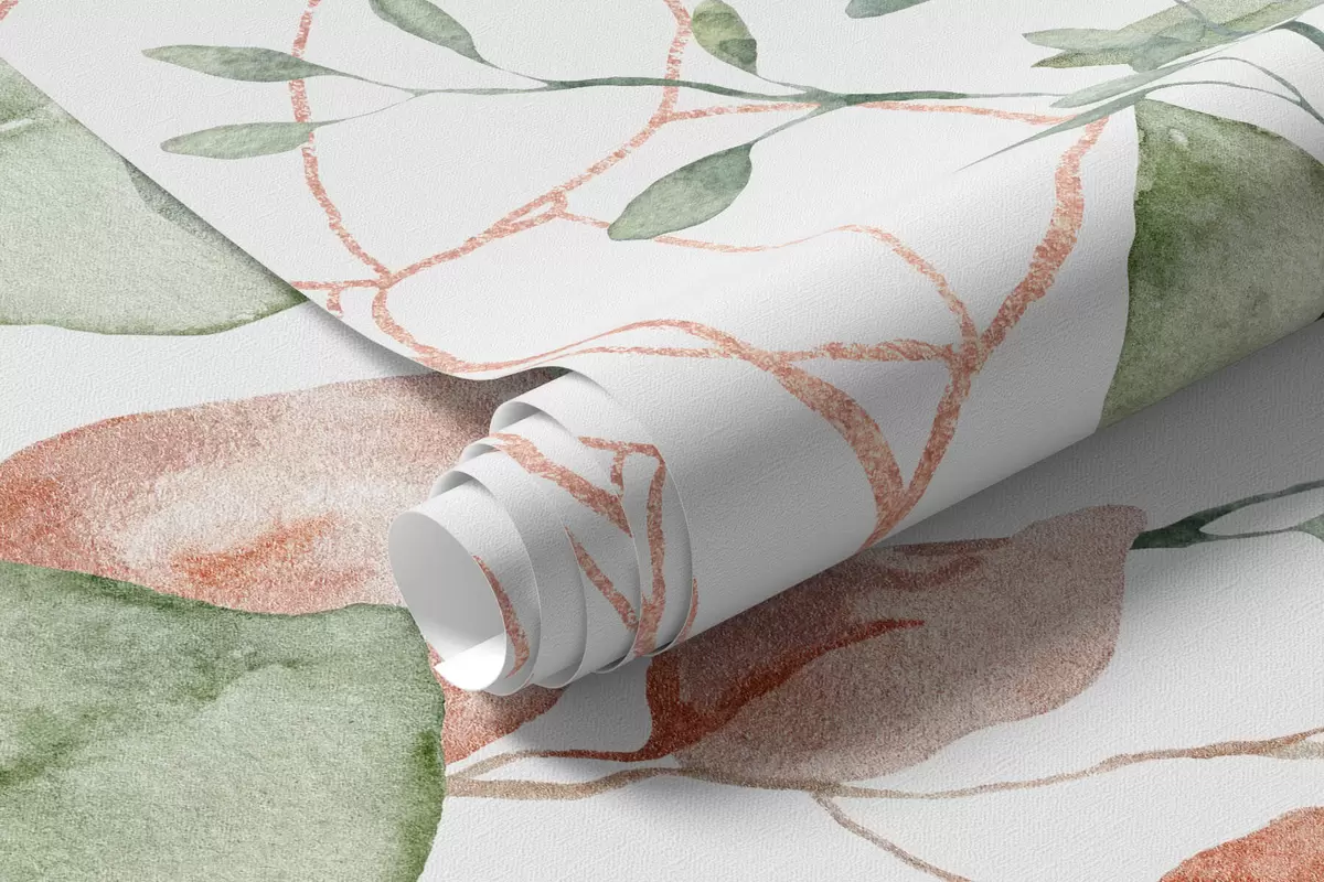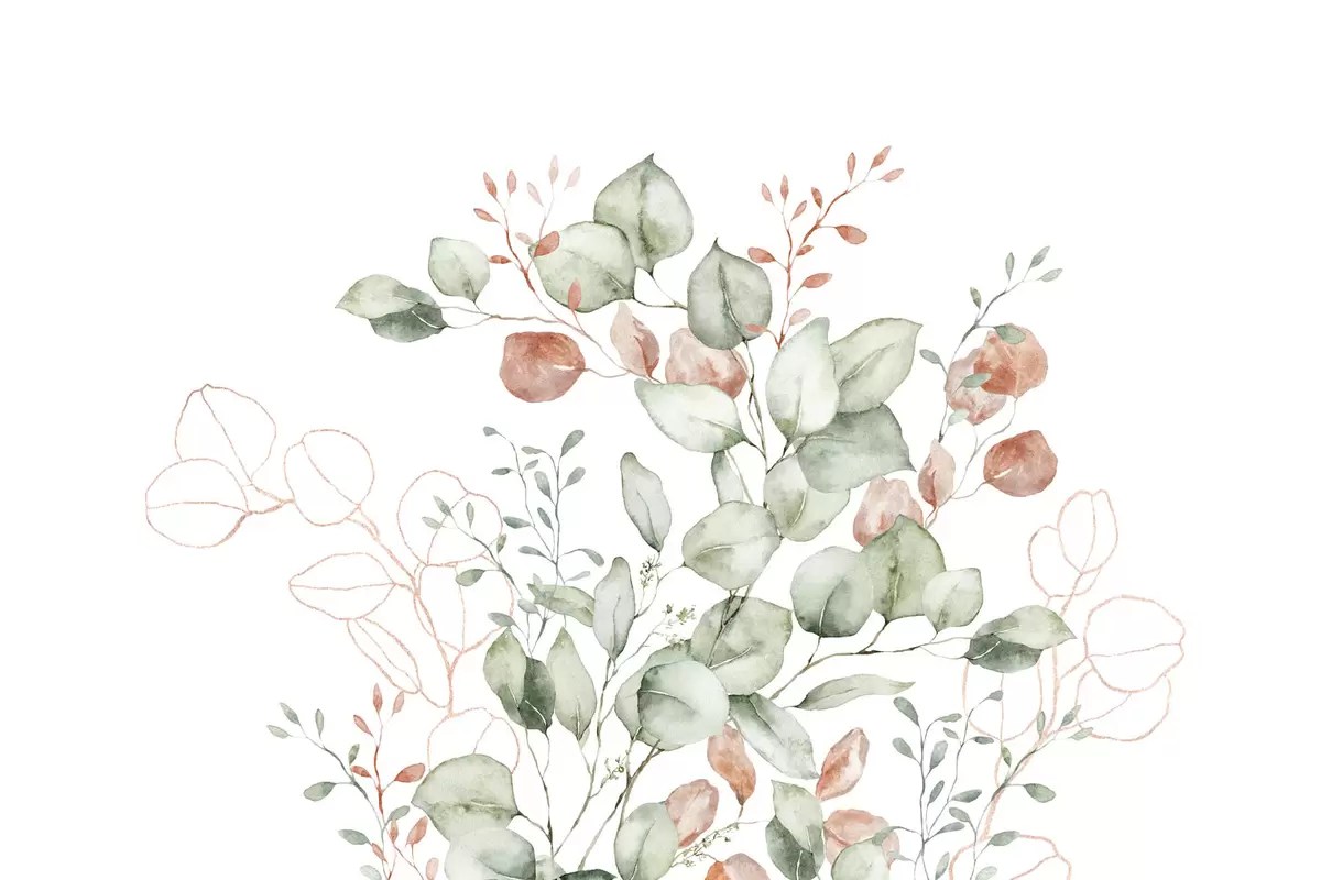 Valokuvatapetti Kasvillisuus ja oksat jäljitelmä teksturoitua akvarellia, vihreän ja punaisen sävyjä Nr w03927v1