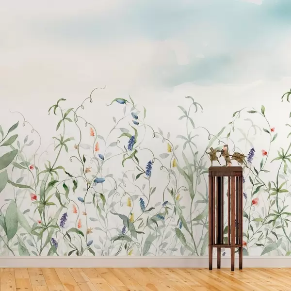 Valokuvatapetti Ruohot ja kasvillisuus jäljitelmä kuvioitu vesiväri Nr w03928v1