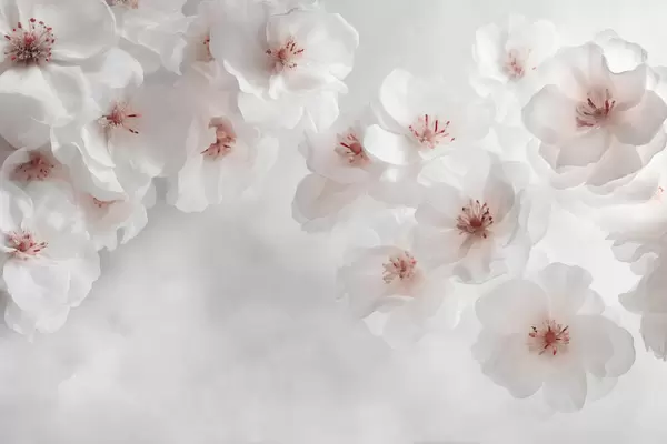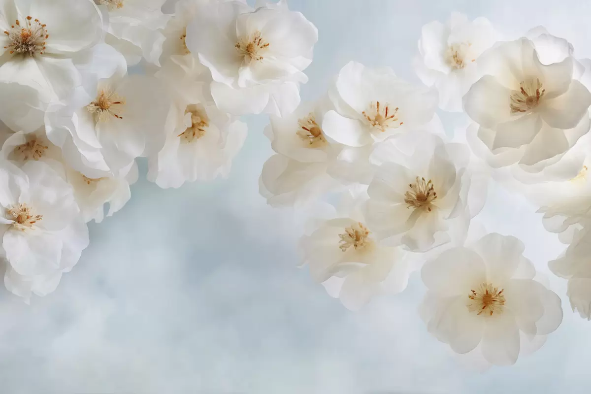Valokuvatapetti Herkät suuret kukat vaaleansinisellä taustalla Nr w03931v1