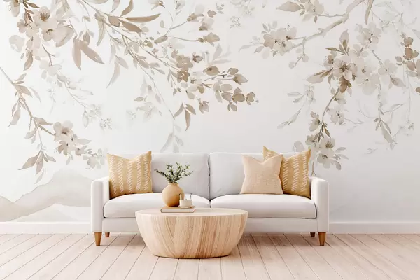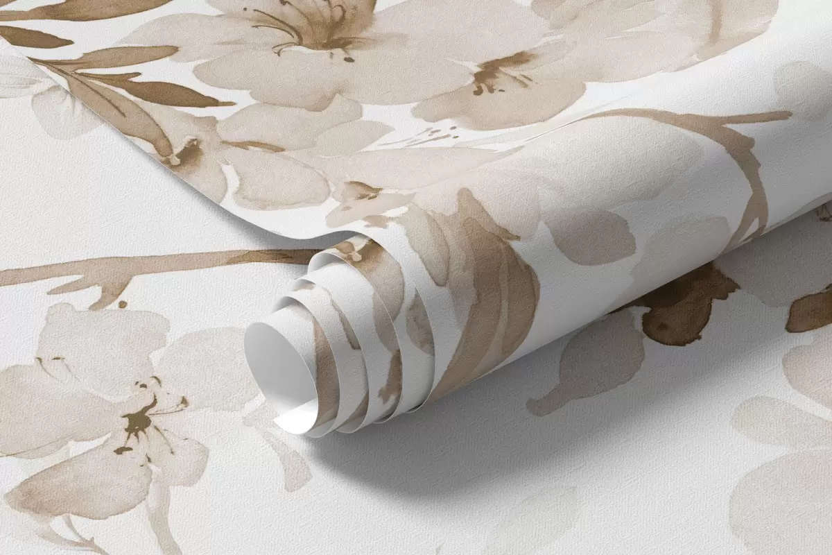 Valokuvatapetti Kukkivat oksat, vesivärin jäljitelmä, beige sävyjä Nr w03935v2