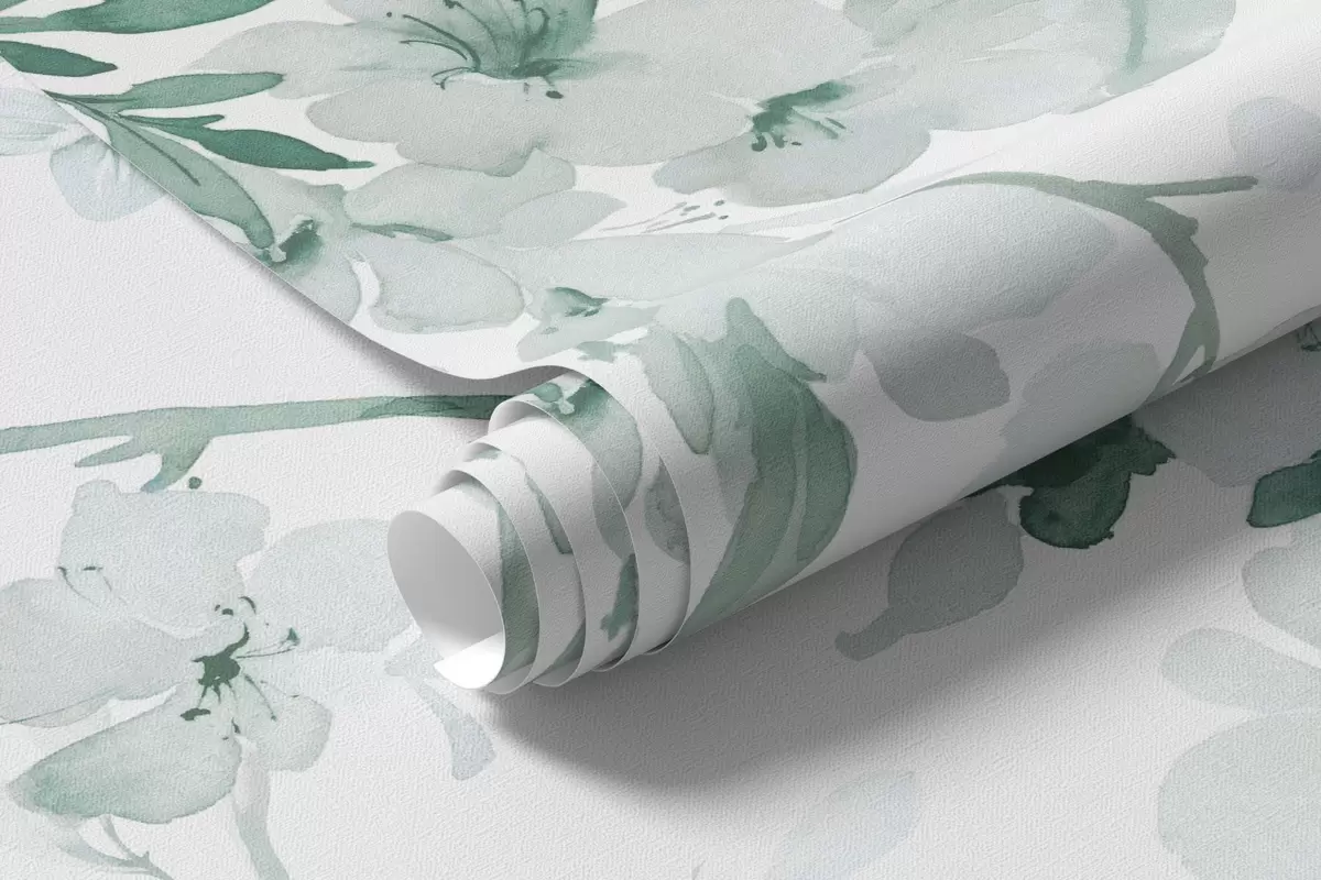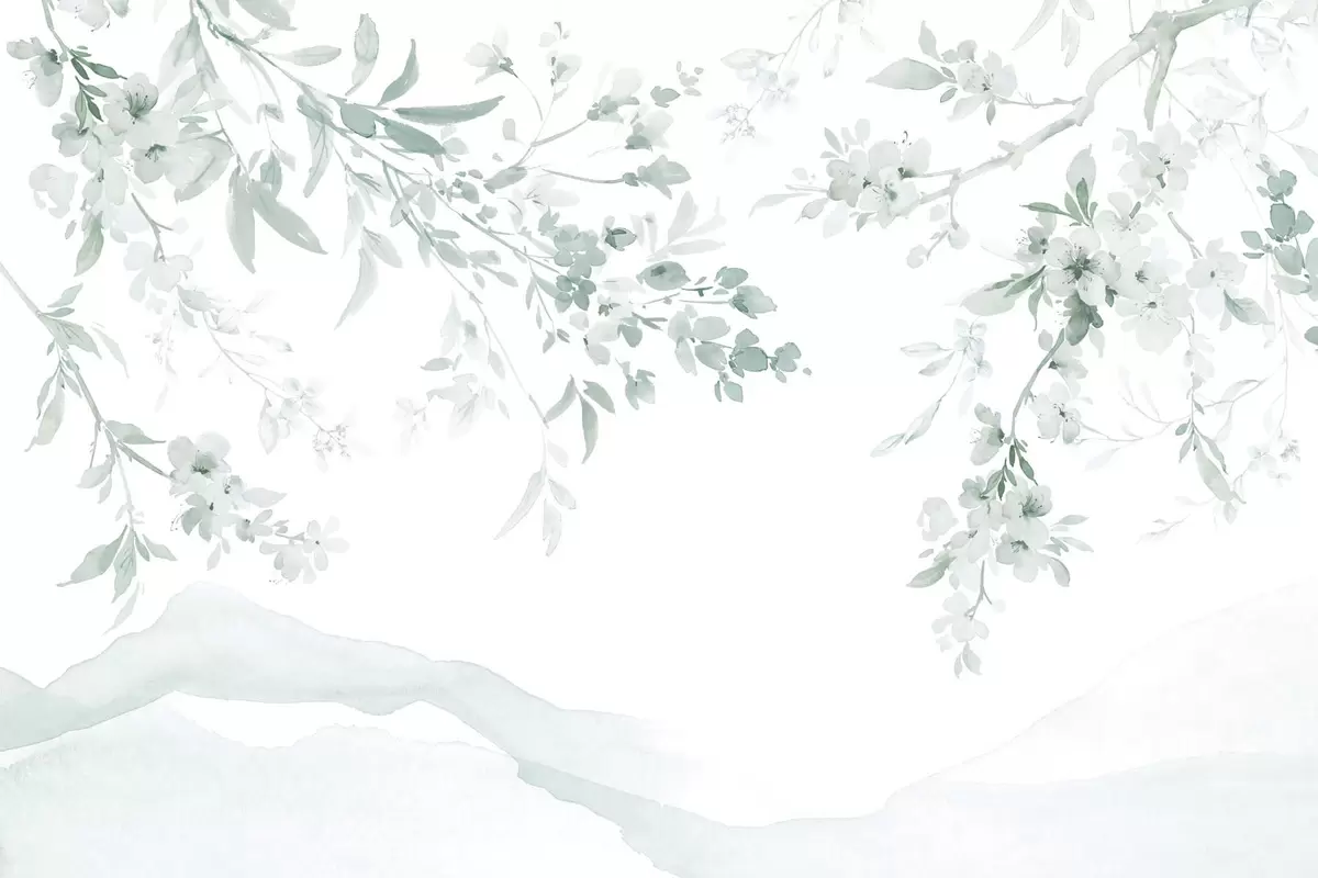 Valokuvatapetti Kukkivat oksat, vesivärin jäljitelmä, vihreät sävyt Nr w03935v3