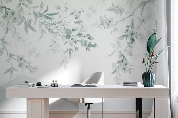 Valokuvatapetti Kukkivat oksat, vesivärin jäljitelmä, vihreät sävyt w03935v3
