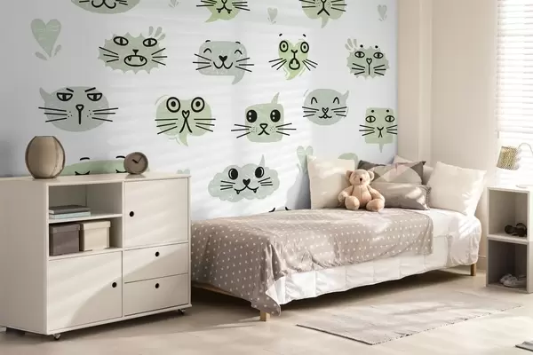 Valokuvatapetti Kissan kasvot vihreän sävyjä Nr w03951v3