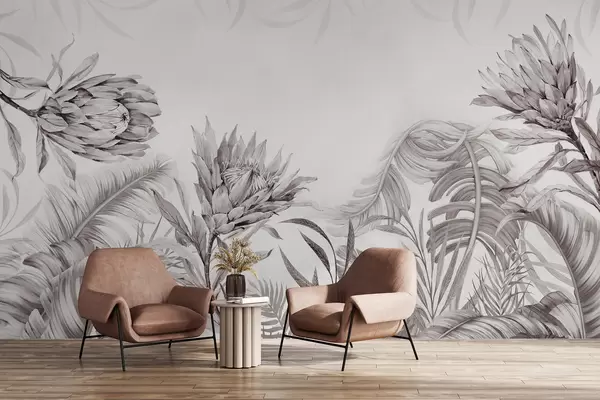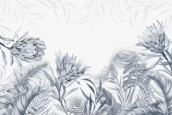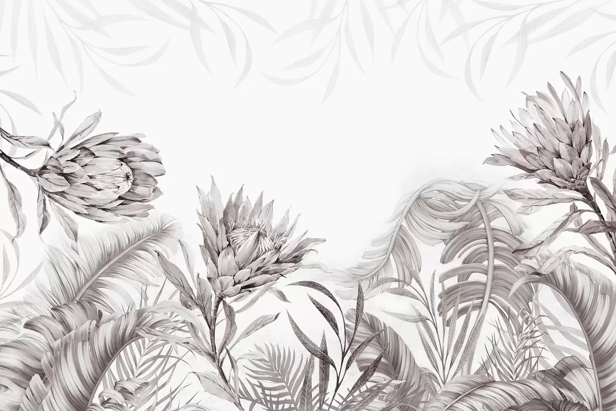 Valokuvatapetti Protea trooppisten lehtien keskellä Nr w03952v1