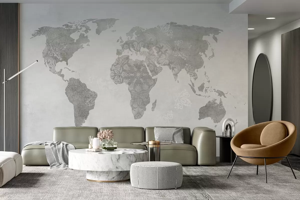 Valokuvatapetti Maailmankartta kuviolla, yksiväriset sävyt Nr w03954v1