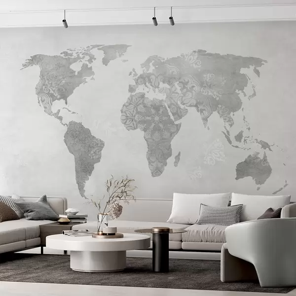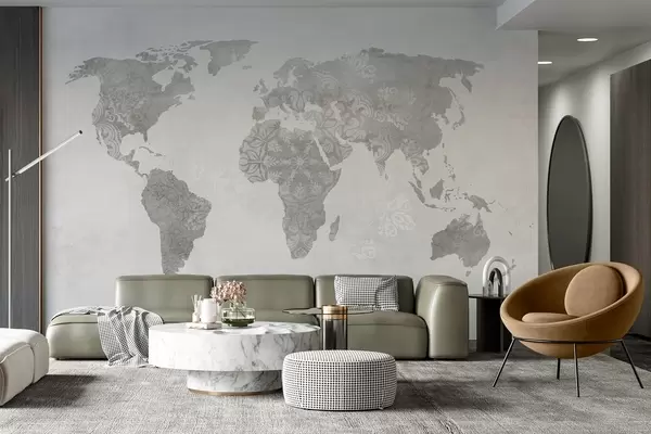 Valokuvatapetti Maailmankartta kuviolla, yksiväriset sävyt Nr w03954v1