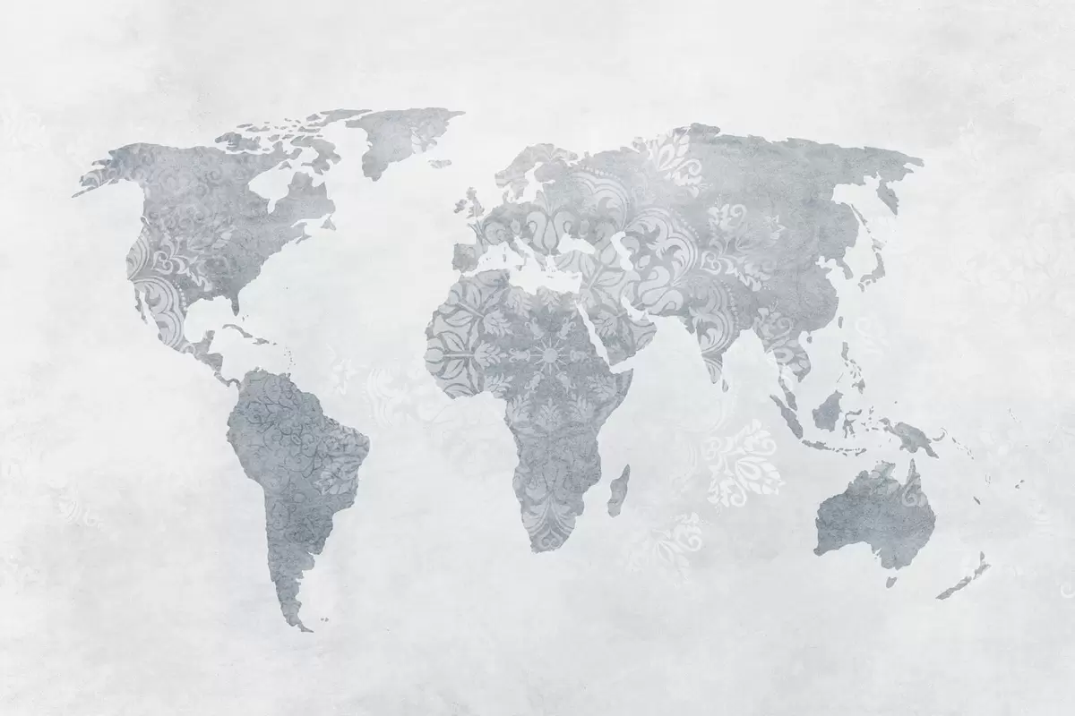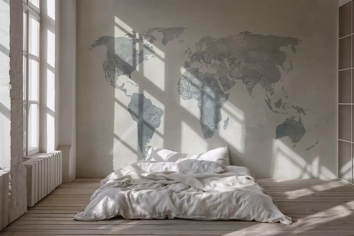 Valokuvatapetti Maailman kartta kuviolla, sinisiä sävyjä w03954v2