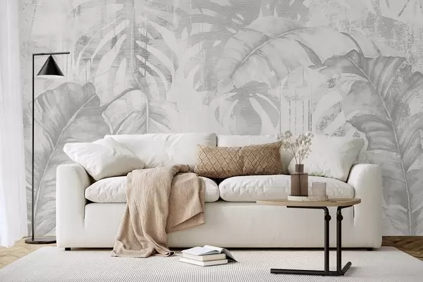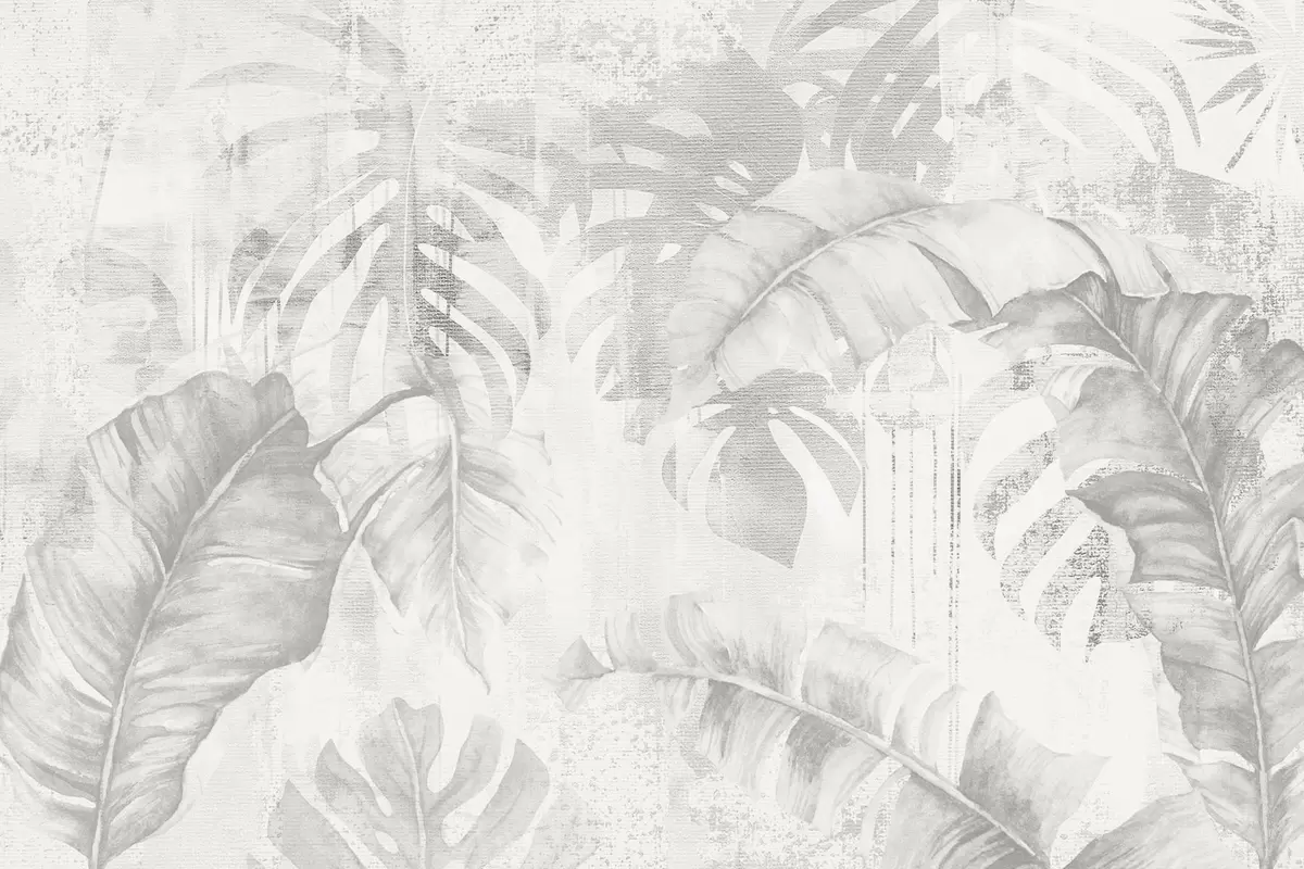Valokuvatapetti Trooppiset lehdet grunge-tyyliin, yksiväriset sävyt Nr w03956v1