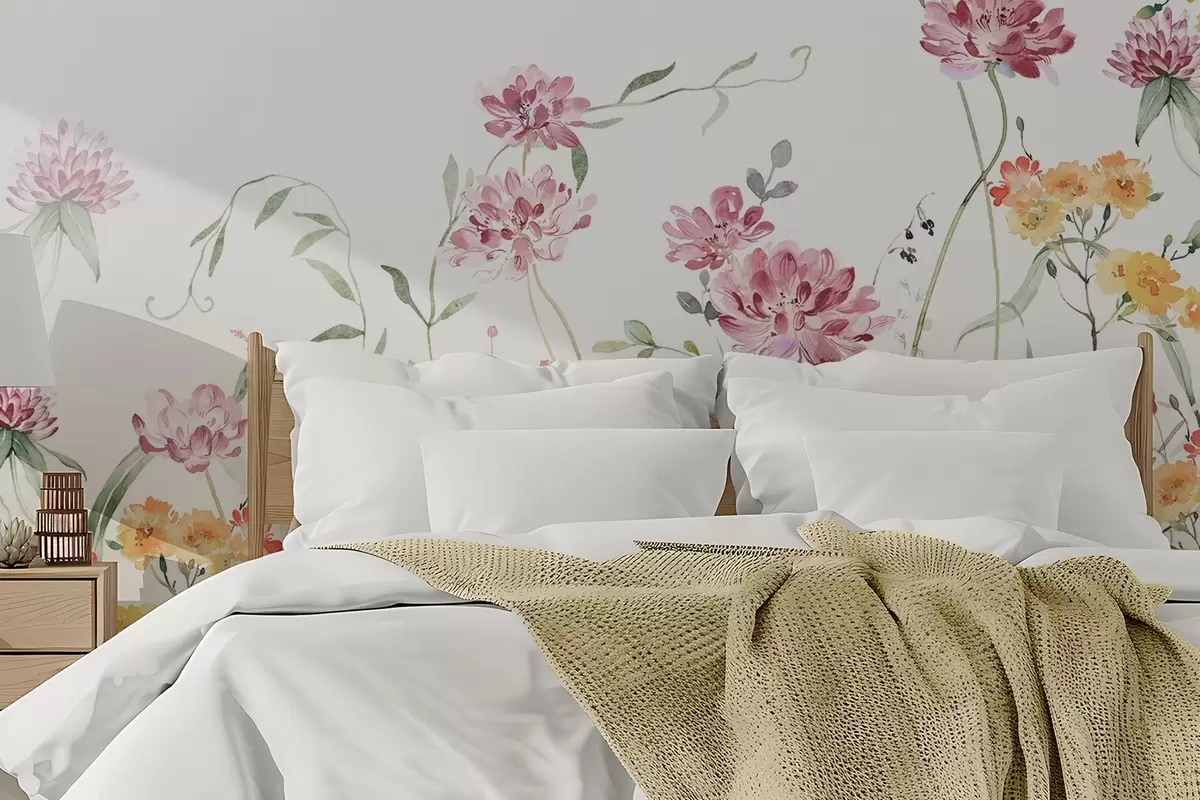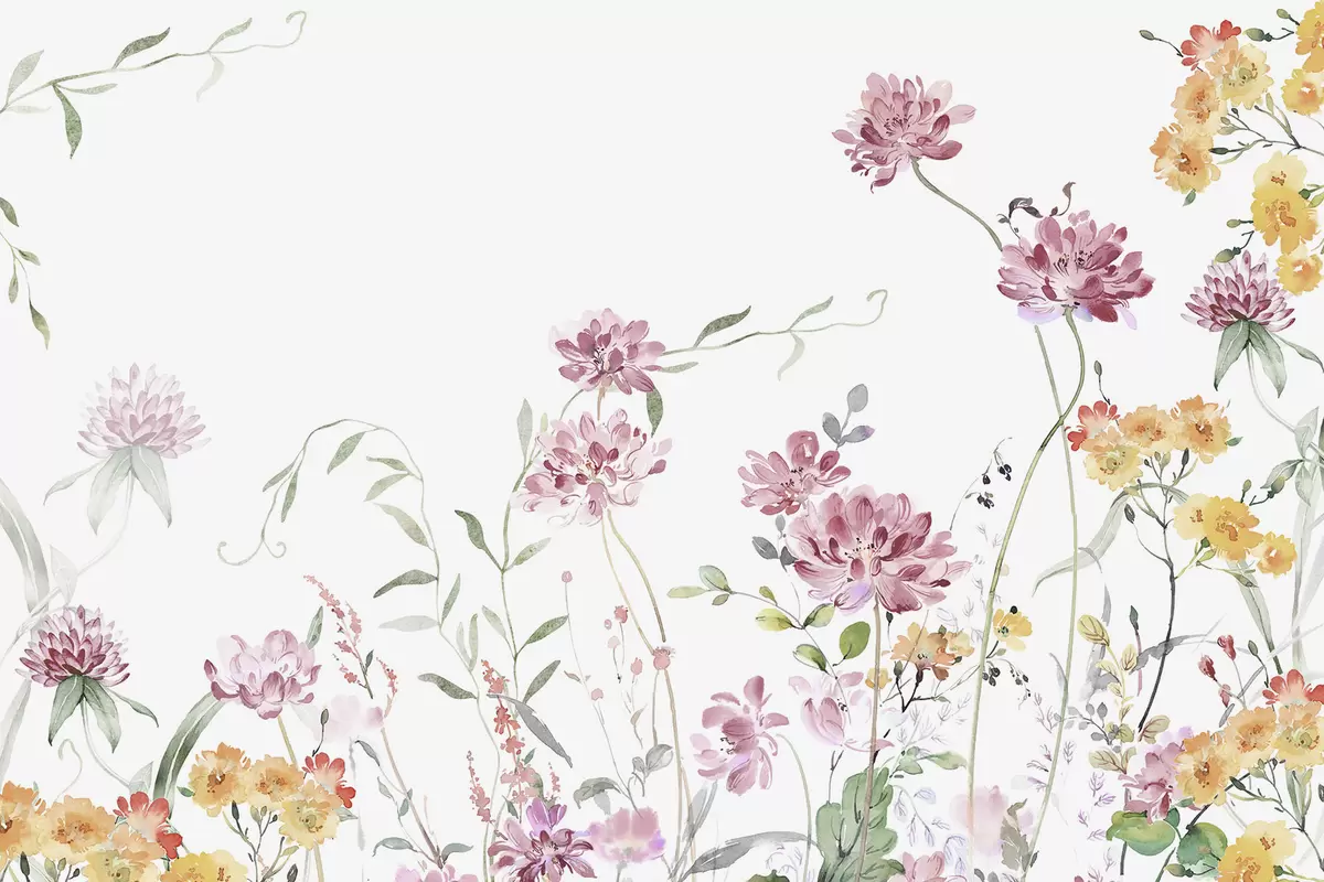 Valokuvatapetti Herkkä luonnonkukkia jäljitelmä vesiväri Nr w03957
