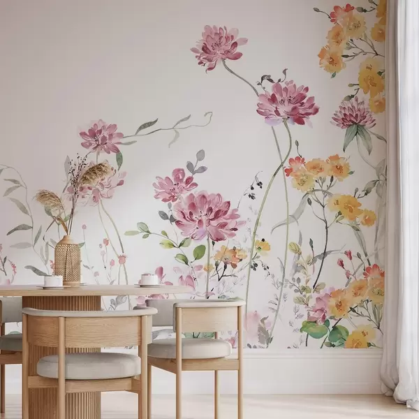 Valokuvatapetti Herkkä luonnonkukkia jäljitelmä vesiväri Nr w03957