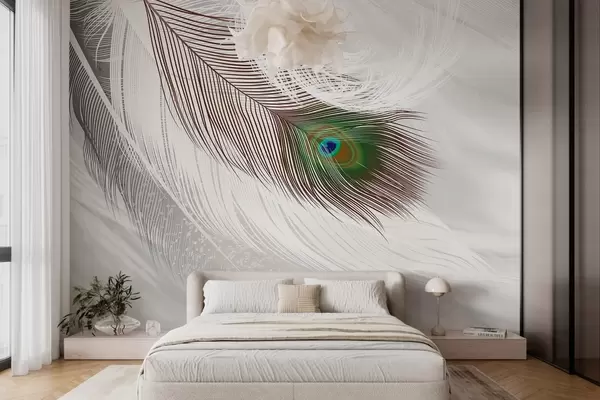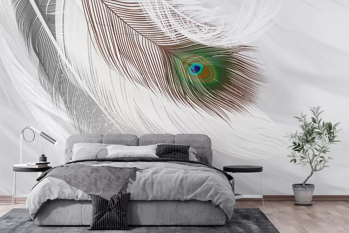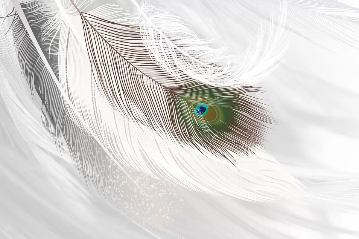 Valokuvatapetti suuri riikinkukon sulka höyhenten joukossa Nr w03961