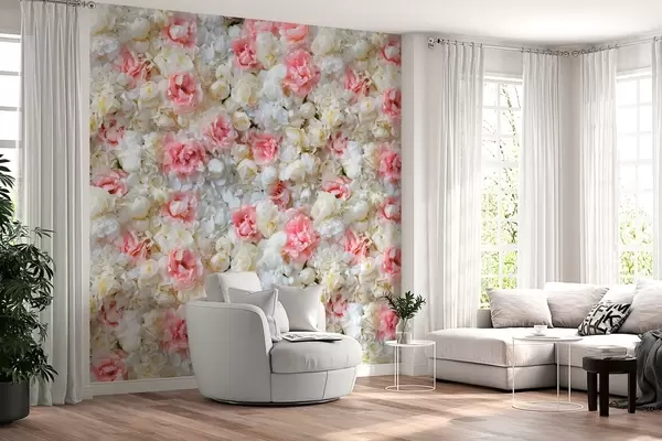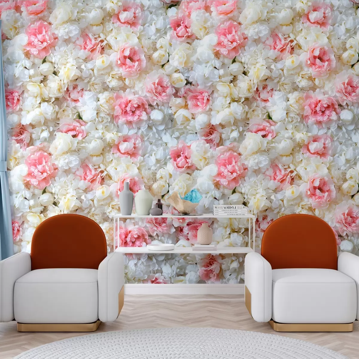 Valokuvatapetti kukkiva pioniseinä Nr w03963